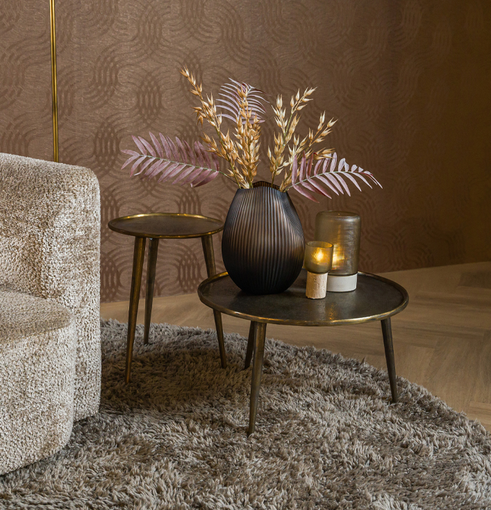 Bijzettafel Bolsina Antiek Brons is een unieke toevoeging aan je interieur. Dankzij het ronde ontwerp straalt het tafeltje een vriendelijke, speelse sfeer uit die perfect past in verschillende stijlen.