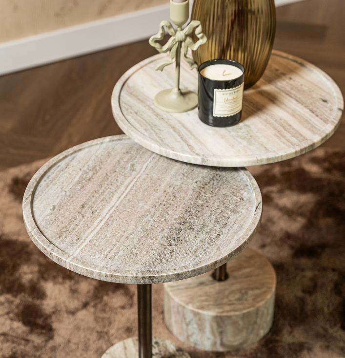 Ten slotte is de Bijzettafel Civita zand een stijlvolle keuze voor wie houdt van subtiele luxe. Hij voegt karakter toe zonder te overheersen en past zich moeiteloos aan verschillende woonstijlen aan. Concluderend is dit een bijzettafel die functionaliteit en elegantie samenbrengt. Kortom, een verfijnde toevoeging aan een warm en modern interieur.