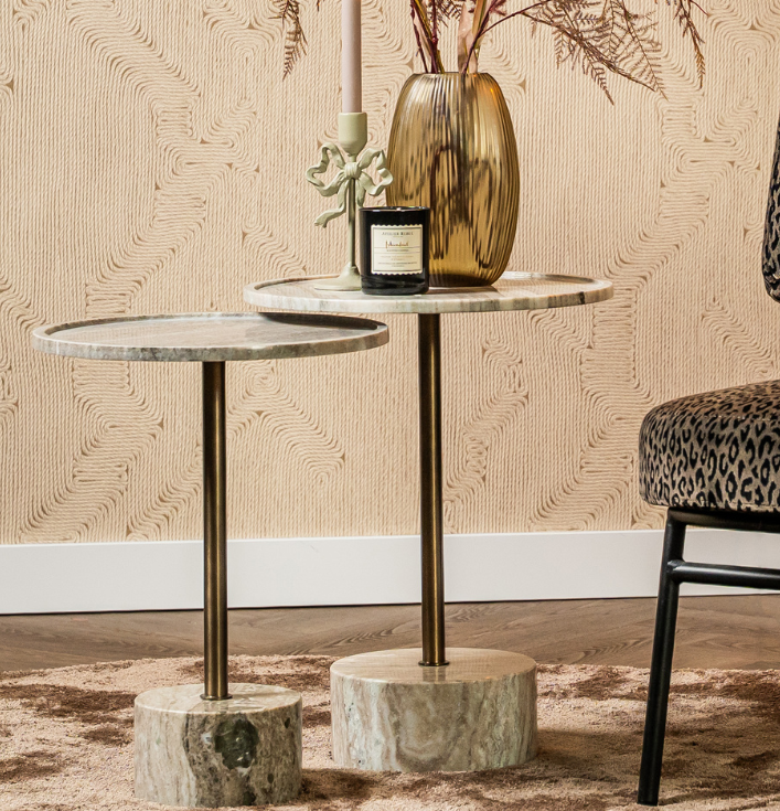 De Bijzettafel Civita zand maakt in de eerste plaats indruk door zijn elegante combinatie van materialen en verfijnde uitstraling. Het ronde blad rust op een slank metalen onderstel met een stevige, zandkleurige voet. Daardoor oogt de tafel licht en luxe tegelijk. De neutrale tinten zorgen voor rust en geven het ontwerp een tijdloos karakter.
