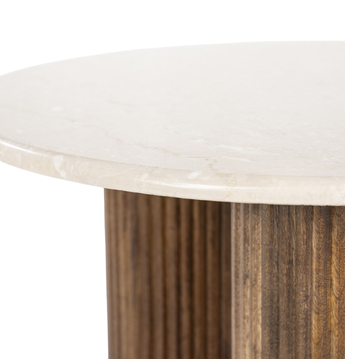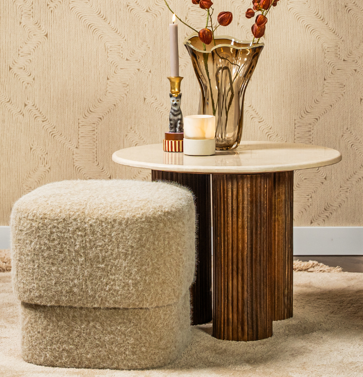 Gebruik de Bijzettafel Xavi wit bijvoorbeeld naast de bank, tussen twee fauteuils of als los statement in de woonkamer. Hij is ideaal voor een kop koffie, een woonboek of een decoratief object. Terwijl het ronde blad zorgt voor een zachte uitstraling, geven de verticale lijnen in het onderstel juist structuur. Daardoor krijgt de ruimte meer diepte en karakter.