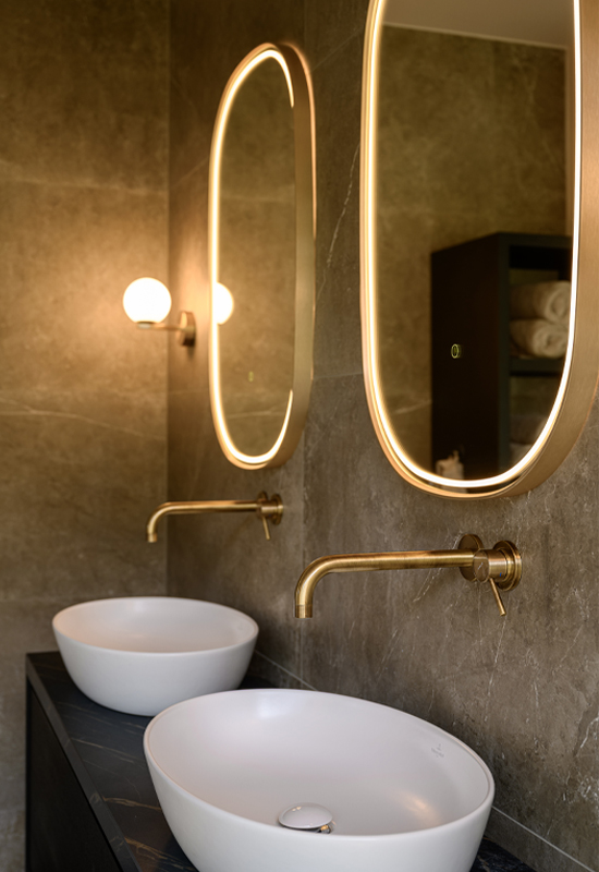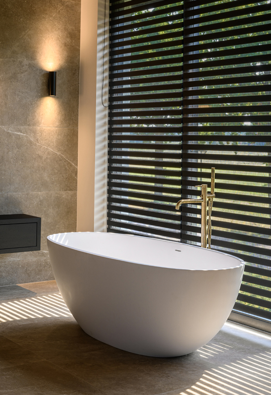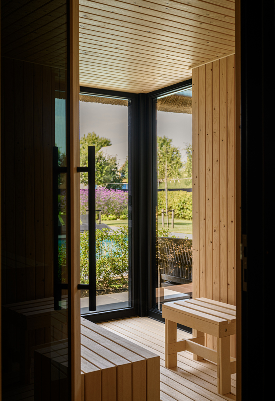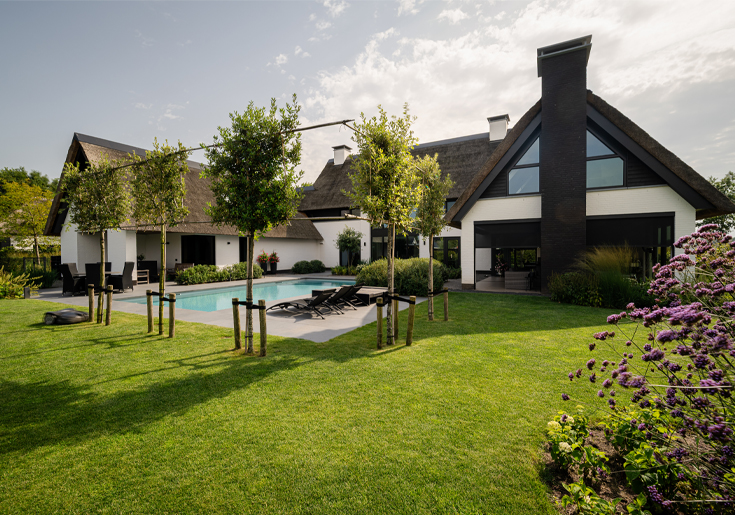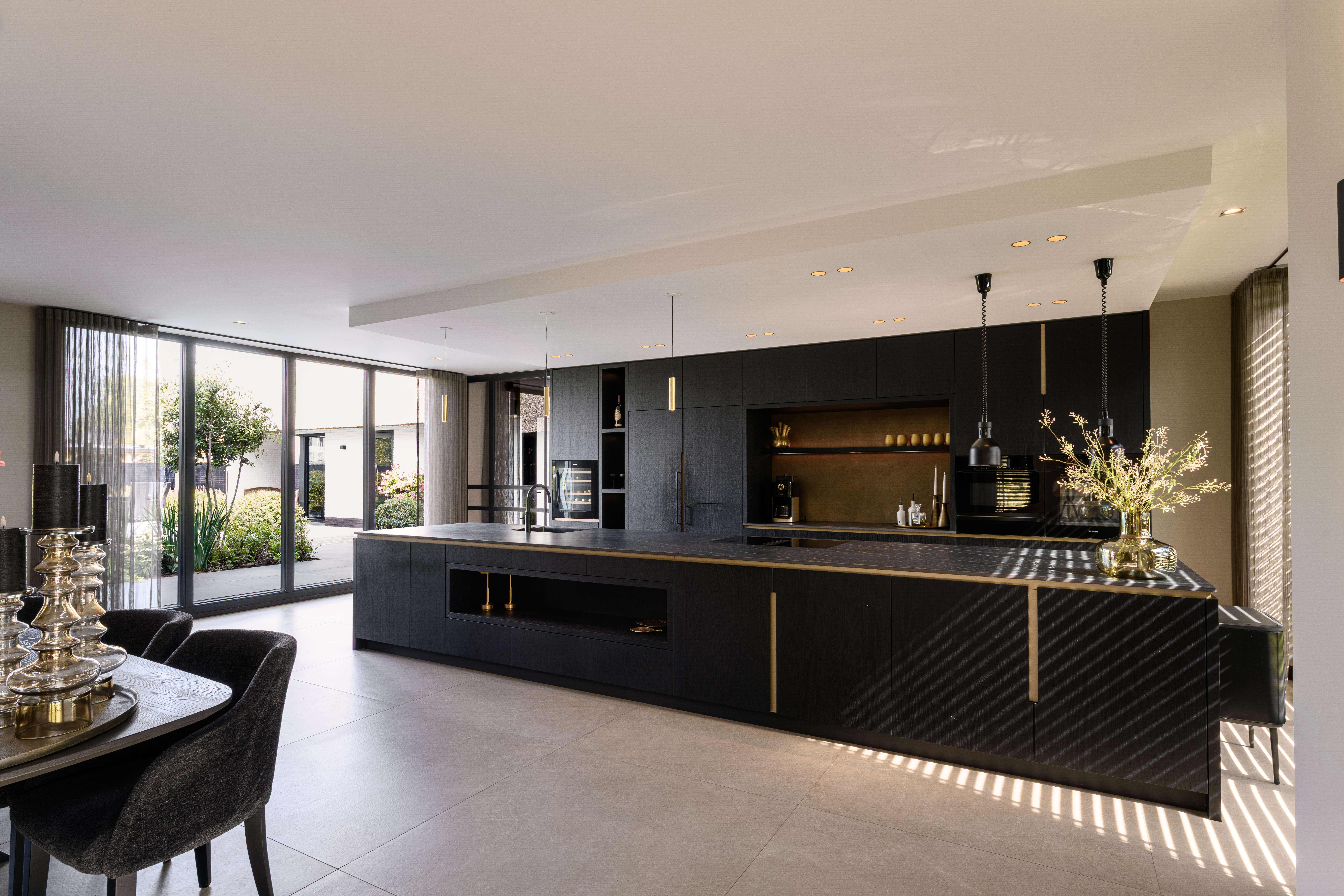 De leefruimtes zijn ontworpen met het oog op comfort, gastvrijheid en dagelijks gemak. De royale keuken met een vijf meter lang keramisch kookeiland vormt een statement van elegantie. Geen barkrukken, maar een grote eettafel waar avonden vanzelf langer duren. Ronde ramen, maatwerk dampkap en schuifpuien zorgen voor licht, lucht en een continue verbinding met de tuin. De wellnessruimte op de begane grond sluit naadloos aan bij dit gevoel van verwennerij: direct toegang tot het zwembad, loungeplekken en rustpunten maken dit tot een ware privé-oase waar binnen en buiten één worden.