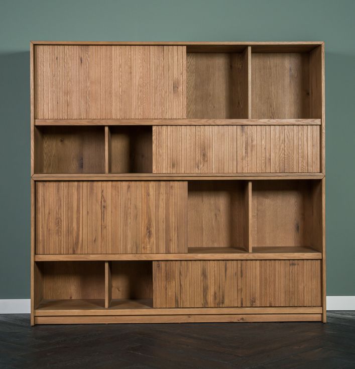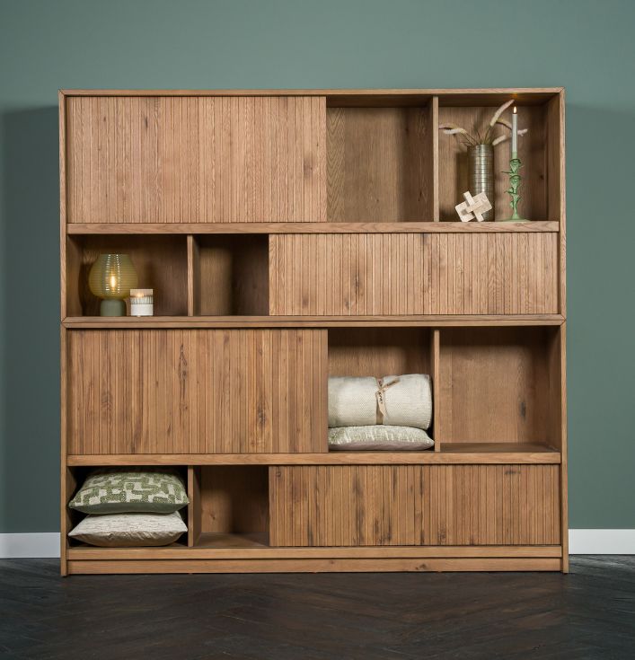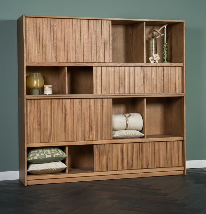 grote boekenkast hout met schuif deurtjes