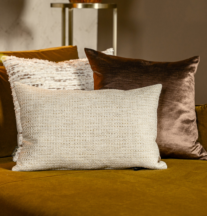 Tijdens het stylen van jouw interieur kun je Merrica gemakkelijk combineren met andere warme tinten, zoals goud, taupe of diepbruin. Daardoor ontstaat een harmonieus geheel dat zowel modern als elegant oogt. Denk daarbij aan het mixen van verschillende structuren – velvet, linnen of wol – voor een rijke, gelaagde look. Als gevolg van de bronskleur is dit kussen ideaal om sfeer toe te voegen zonder te overweldigen.