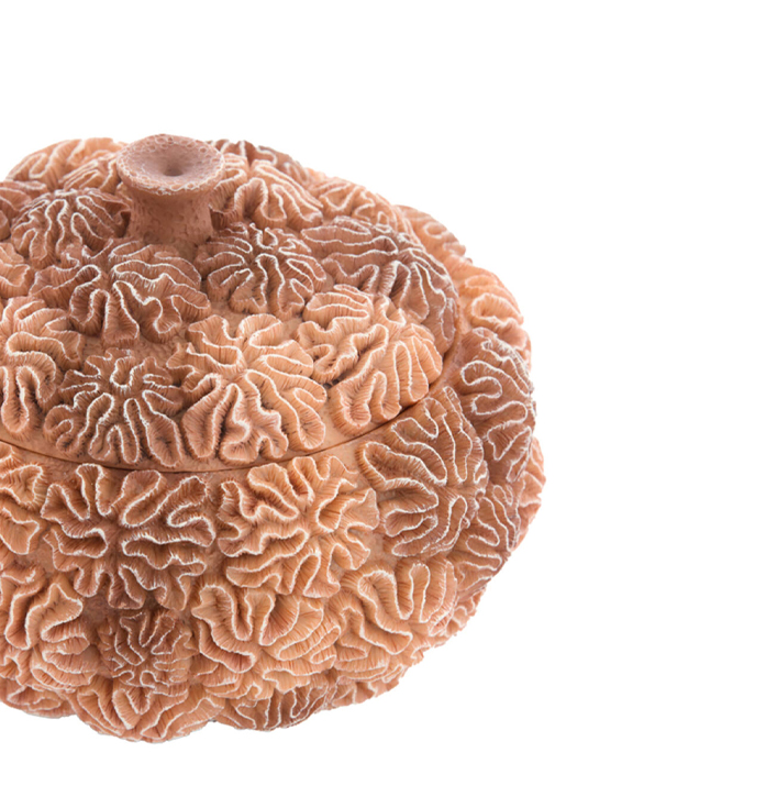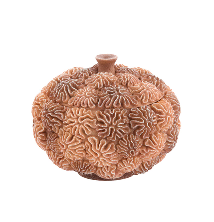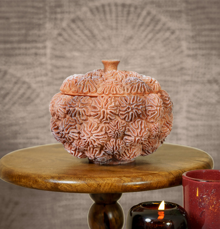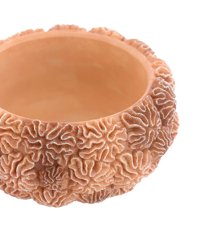 Breng de schoonheid van de zee in huis met de Decoratieve box Coral. Deze bijzondere pot is geïnspireerd op de vormen van hersenkoraal, wat zorgt voor een opvallend en organisch reliëf. De warme, natuurlijke tinten geven het geheel een zachte en rustgevende uitstraling. Daardoor is deze pot niet alleen functioneel, maar ook een stijlvolle toevoeging aan ieder interieur.