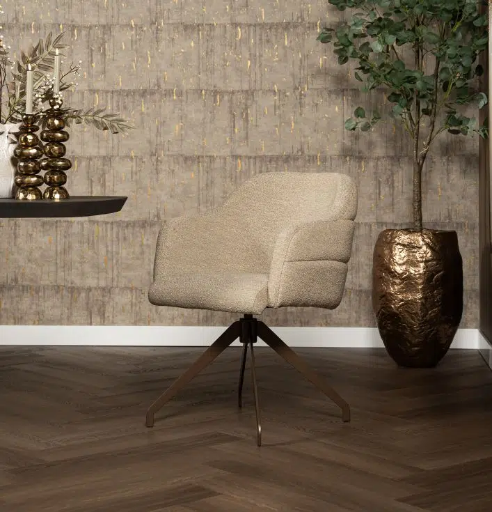 • Luxe uitstraling: Champagnekleurige stalen poten geven de stoel een chique uitstraling.