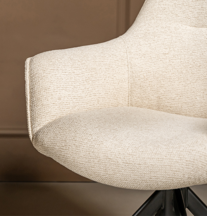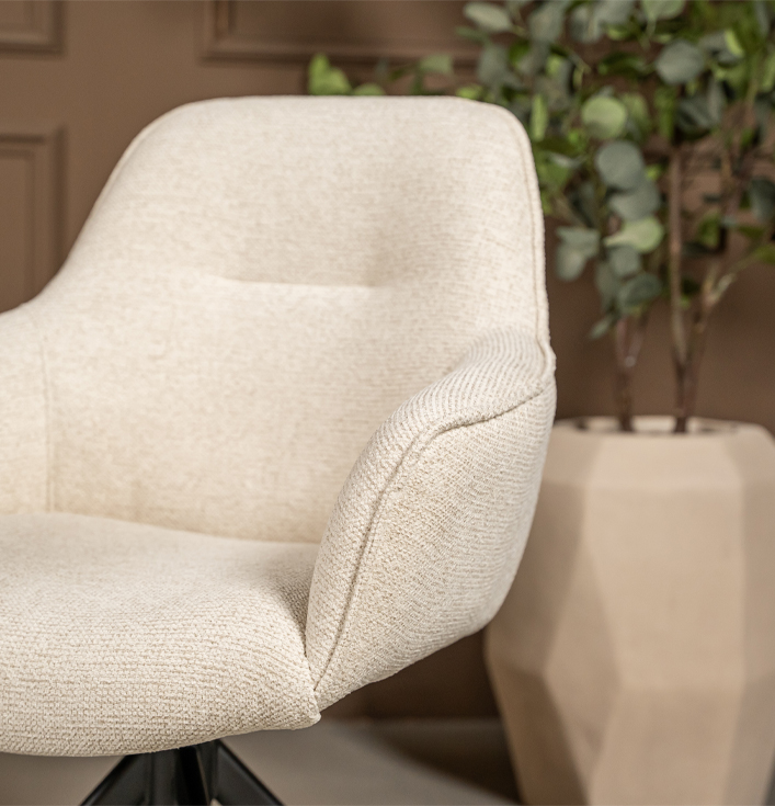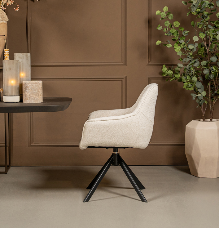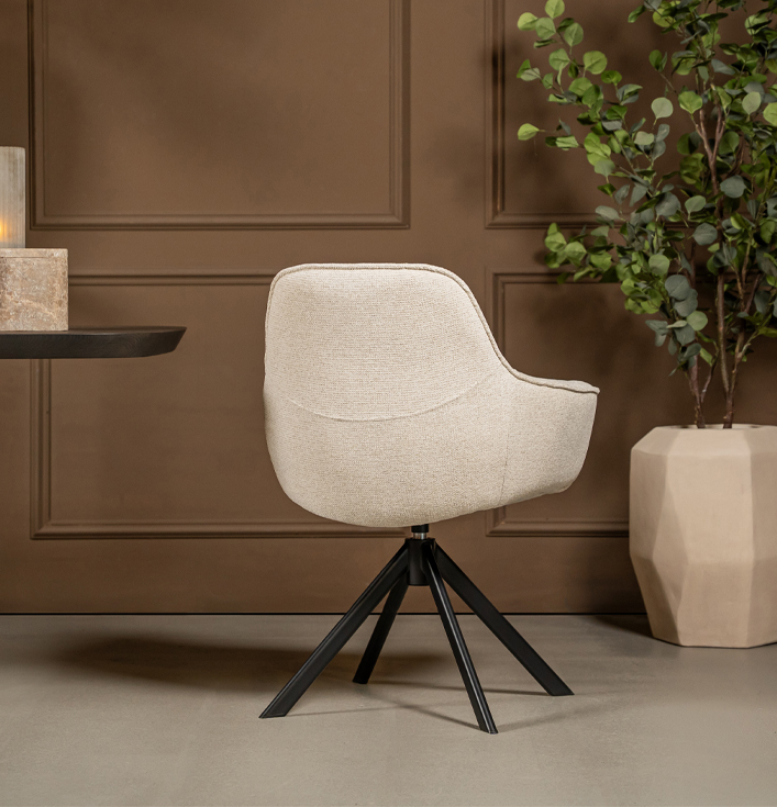 Tijdens gezellige diners of lange werkmomenten aan de tafel merk je hoe prettig de ergonomisch gevormde kuipzitting ondersteunt. Daarnaast beschikt Eetkamerstoel Lara over een stevige draaifunctie, waardoor je soepel beweegt zonder de stoel te verplaatsen. Dit maakt haar ideaal voor dagelijks gebruik. Hoewel het ontwerp compact oogt, biedt de stoel verrassend veel ondersteuning. Daarentegen voelen veel traditionele eetkamerstoelen minder zacht en minder uitnodigend.