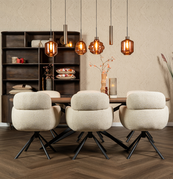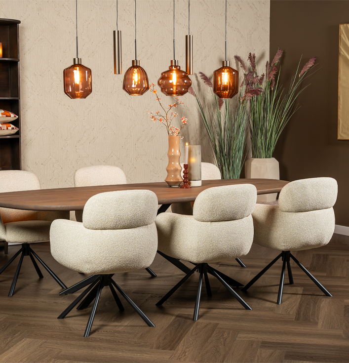 Tijdens het zitten merk je direct hoe de rond gevormde rug en zitting jouw lichaam ondersteunen. Daarnaast beschikt de stoel over een stevige draaifunctie, waardoor je soepel kunt bewegen zonder de stoel te verschuiven. Dit maakt Layla ideaal voor lange diners, werkmomenten aan de eettafel of gezellige avonden met vrienden. Hoewel de stoel compact oogt, biedt hij verrassend veel zitcomfort. Daarentegen zijn veel standaard eetkamerstoelen minder zacht gevoerd en minder flexibel.