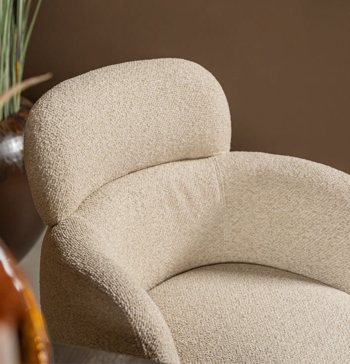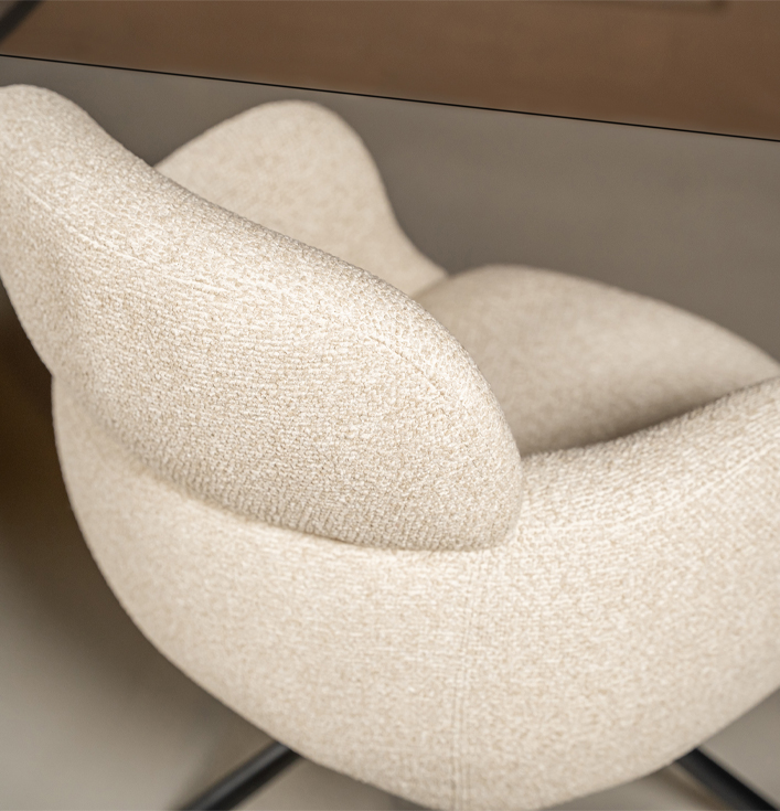 De Eetkamerstoel Layla combineert een warme uitstraling met een modern design, waardoor deze stoel perfect past in zowel eigentijdse als luxe interieurs. Voordat de stoel werd ontworpen, is er uitgebreid gekeken naar de behoefte aan zachte vormen en optimaal comfort. Daarna is Layla ontwikkeld met een opvallend gewatteerde zitting en rugleuning, waardoor de stoel niet alleen comfortabel is, maar ook een stijlvolle eyecatcher vormt aan de eettafel. De zachte bouclé-stoffering voelt warm en rijk aan, net zoals high-end hotelmeubels.