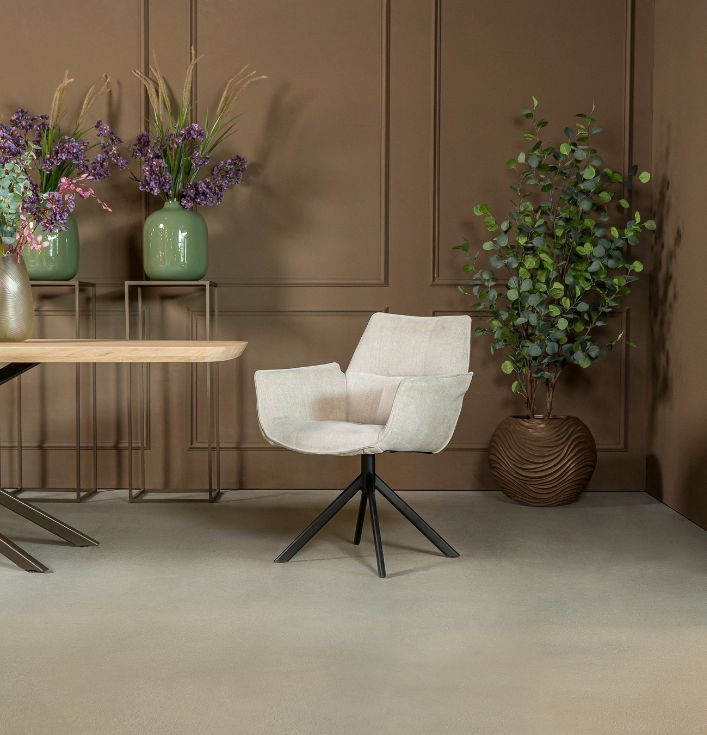 Bij de eetkamerstoel Marseille kun je kiezen tussen draaibare en niet-draaibare poten. De draaibare variant biedt extra flexibiliteit en gemak, ideaal voor een dynamische eetervaring. Dit maakt de stoel praktisch en comfortabel voor dagelijks gebruik.