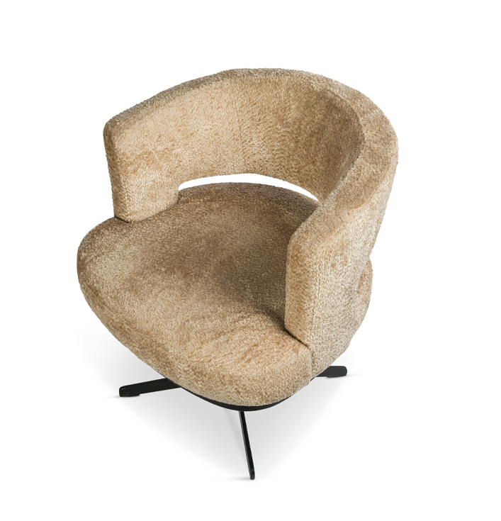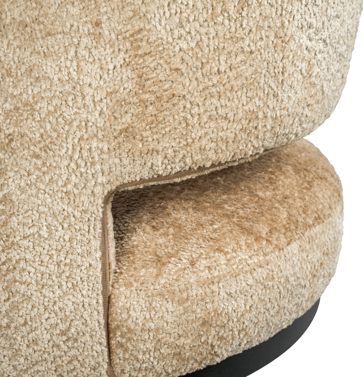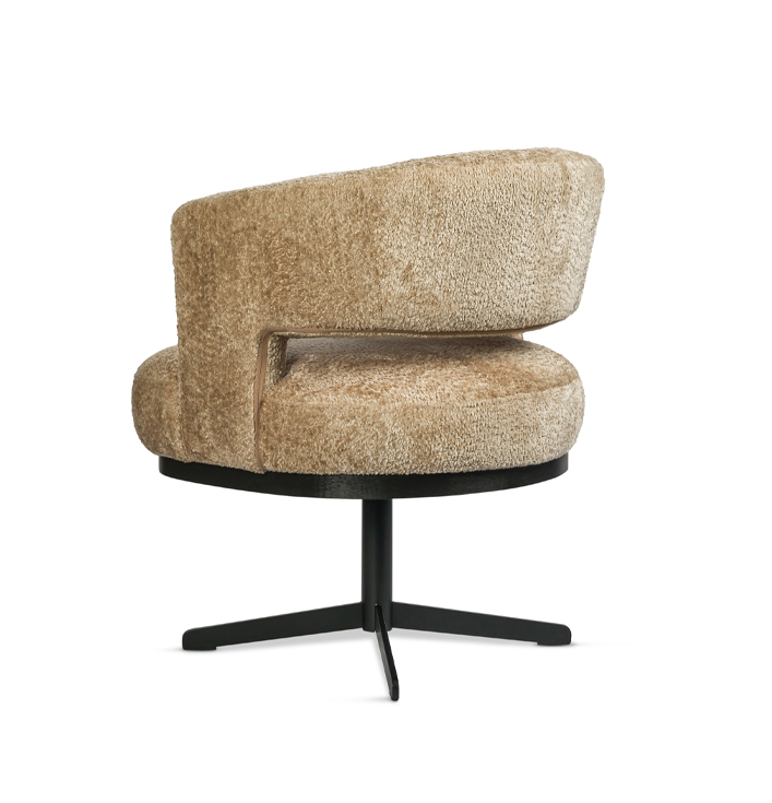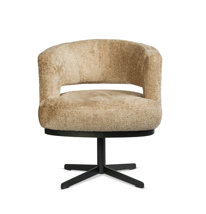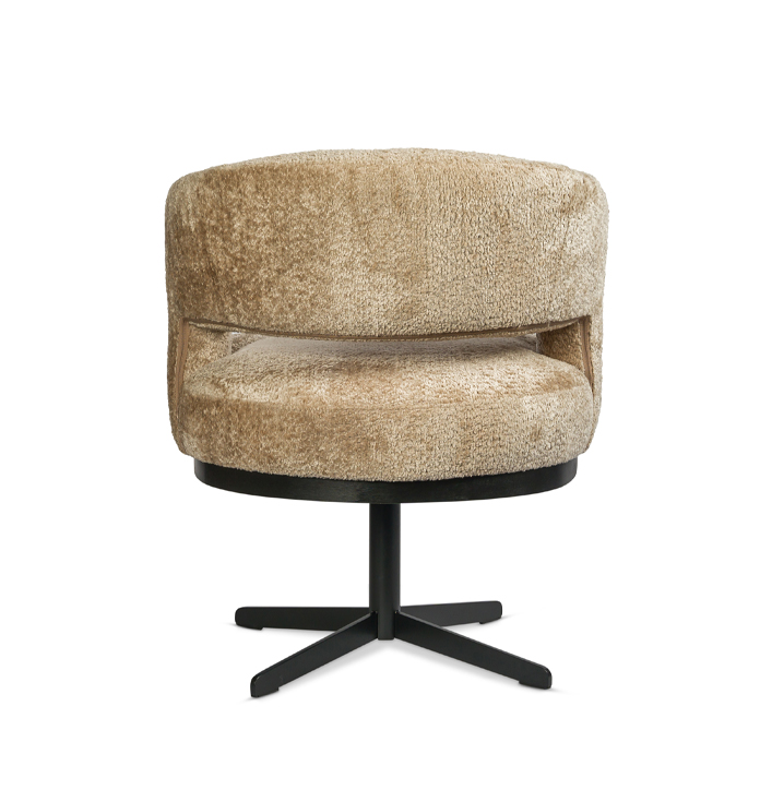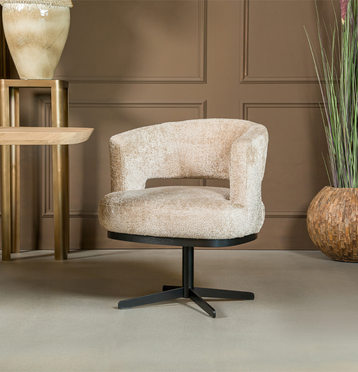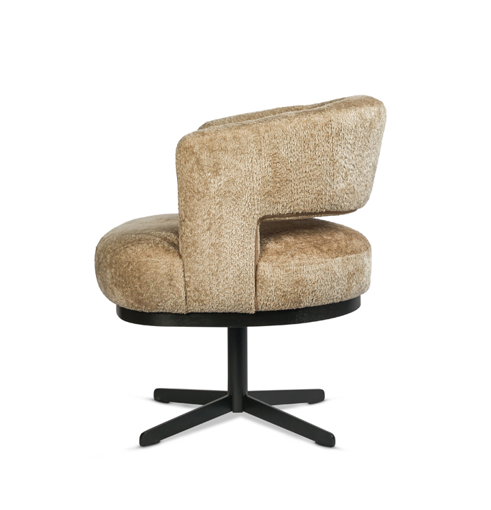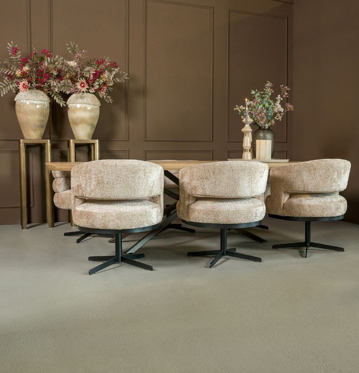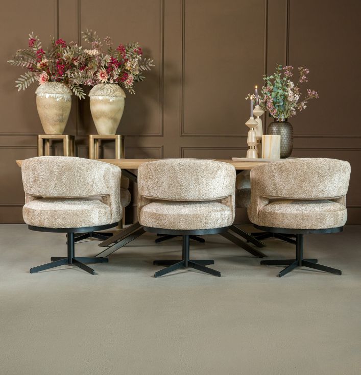 Eetkamerstoel beige rond draaivoet zwart metaal