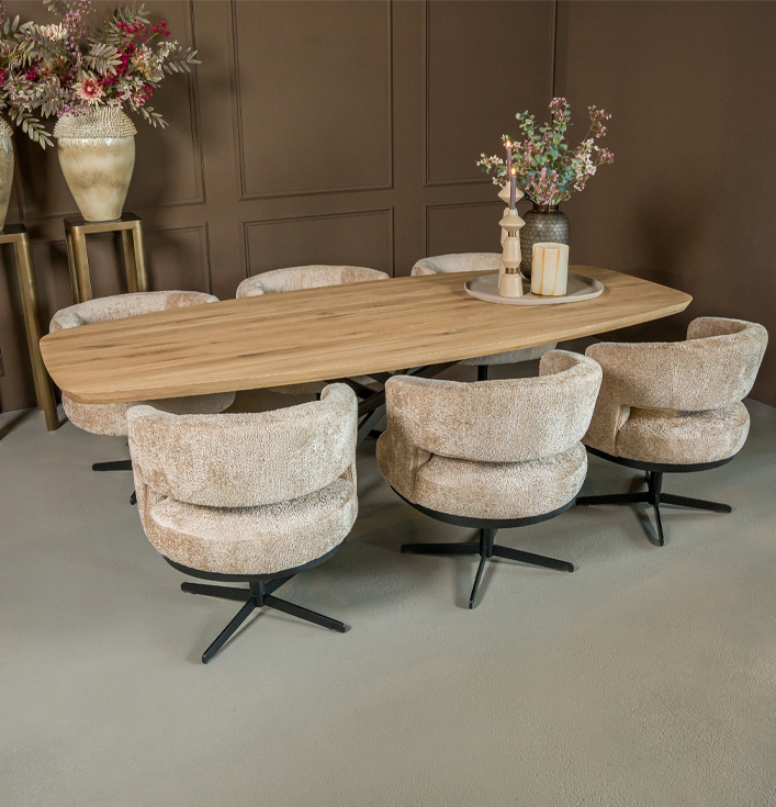 Met de Eetkamerstoel Mirelle heb je een ruime keuze aan stoffen en kleuren. Van luxe velours tot stevig linnen, er is altijd een stof die perfect bij jouw smaak past. Of je nu gaat voor een warme, neutrale tint of juist voor een gedurfde kleur, deze stoel biedt eindeloze mogelijkheden. De stofkeuze bepaalt de uiteindelijke prijs, zodat je het design kunt afstemmen op je budget. Waarom kiezen voor de Eetkamerstoel Mirelle?