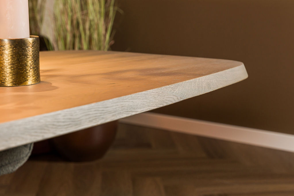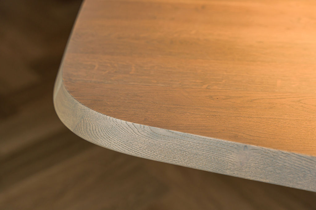 Verder is de afgeronde randafwerking niet alleen elegant, maar ook veilig en comfortabel in gebruik. Net zoals bij andere modellen uit de collectie, is oog voor detail duidelijk zichtbaar – van de vorm van het blad tot de strakke pootconstructie.
