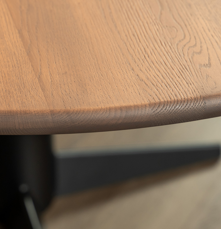 Je kunt de randafwerking van je tafel kiezen. Ga voor rechte, verjongde, bolle of uitlopende randen, afhankelijk van de uitstraling die je zoekt. Daarnaast is de tafel verkrijgbaar in 9 verschillende kleuren eikenhout. Zo kun je de juiste kleur kiezen die bij jouw interieur past.