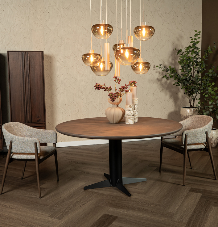 Bij de Ronde tafel op maat bij Whoon Oisterwijk kun je de tafel in verschillende diameters bestellen. Of je nu kiest voor een kleinere tafel van Ø 120 cm of een grotere versie van Ø 160 cm, de keuze is helemaal aan jou. De juiste maat zorgt ervoor dat de tafel precies past in jouw eetruimte.