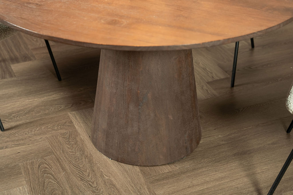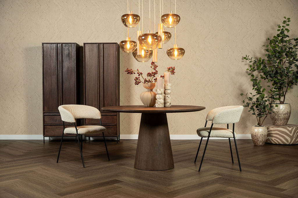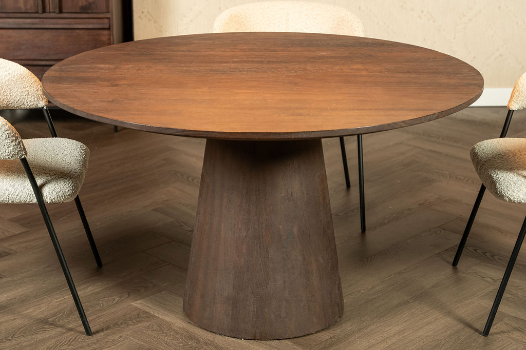 Creëer een warme en uitnodigende sfeer in uw eetkamer met de Eettafel Nova Rond. Deze prachtige ronde eettafel is het perfecte middelpunt voor zowel dagelijkse maaltijden als feestelijke diners met vrienden en familie. Het royale ronde blad, uitgevoerd in een diepe bruintint, nodigt uit tot gezellige gesprekken en zorgt ervoor dat iedereen zich verbonden voelt. De tijdloze uitstraling en robuuste constructie garanderen jarenlang plezier. Of u nu geniet van een intiem ontbijt of een uitgebreid diner, de Eettafel Nova Rond biedt comfort en stijl. Een aanwinst voor elk interieur, van klassiek tot eigentijds. Ontdek hoe deze bruine ronde eettafel uw huis transformeert in een plek vol warmte en gezelligheid. Combineer hem met uw favoriete stoelen en geniet van onvergetelijke momenten.
