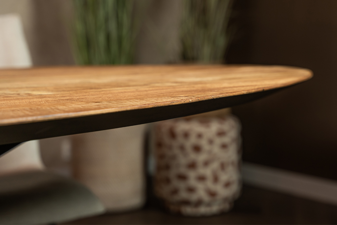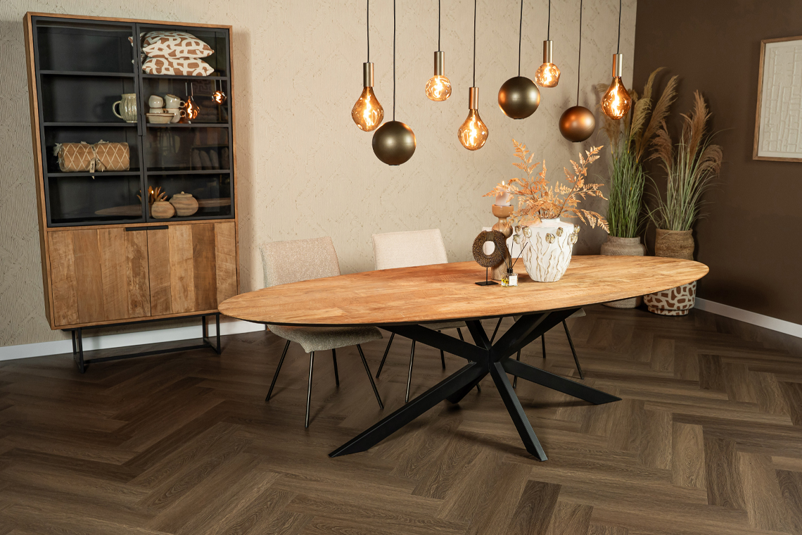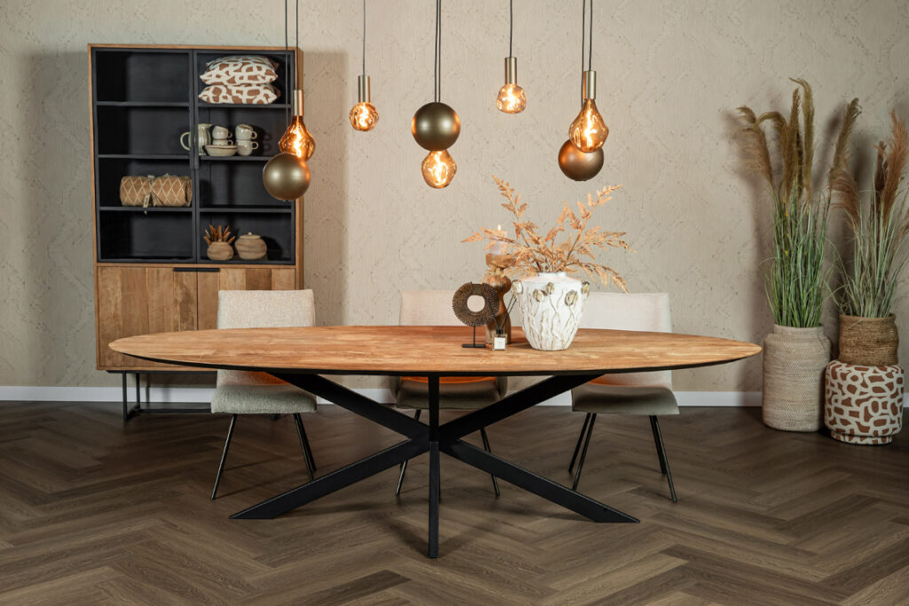 Hoewel rechthoekige tafels vaak de standaard zijn, onderscheidt de ovale variant zich juist door zijn zachtere vormen. Integendeel, deze tafel zorgt voor een open en vriendelijke sfeer waarin iedereen gemakkelijk kan aanschuiven. Doordat hout en metaal tijdloos te combineren zijn, past de ovale eettafel zowel in een industrieel interieur als in een meer klassiek of Scandinavisch ingerichte woning.