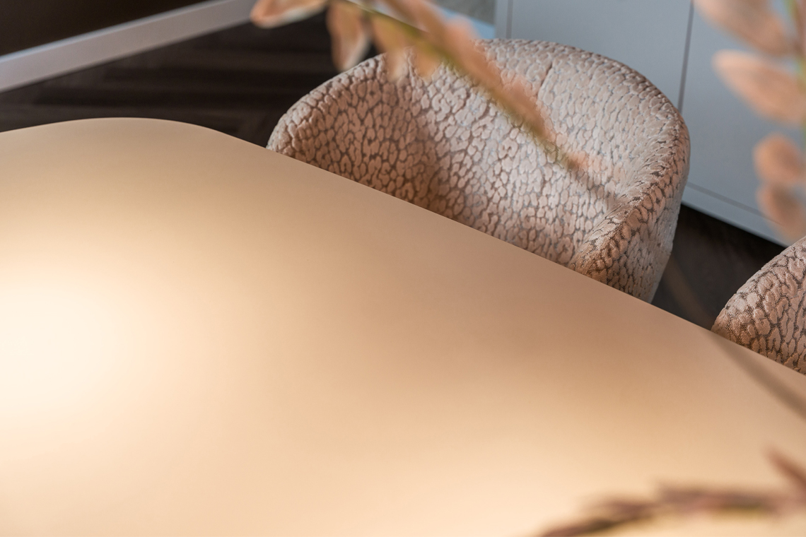 Wat de Roan bijzonder maakt, is de mogelijkheid tot personalisatie. De tafel is verkrijgbaar in diverse groottes, zodat er altijd een maat is die past bij jouw ruimte en behoeften. Net zoals bij maatwerk bepaal jij de uitstraling van de tafel zelf: je kunt kiezen uit verschillende houtstructuren, bladdiktes en onderstellen. Daarmee geef je de tafel een unieke touch die helemaal aansluit bij jouw persoonlijke smaak.