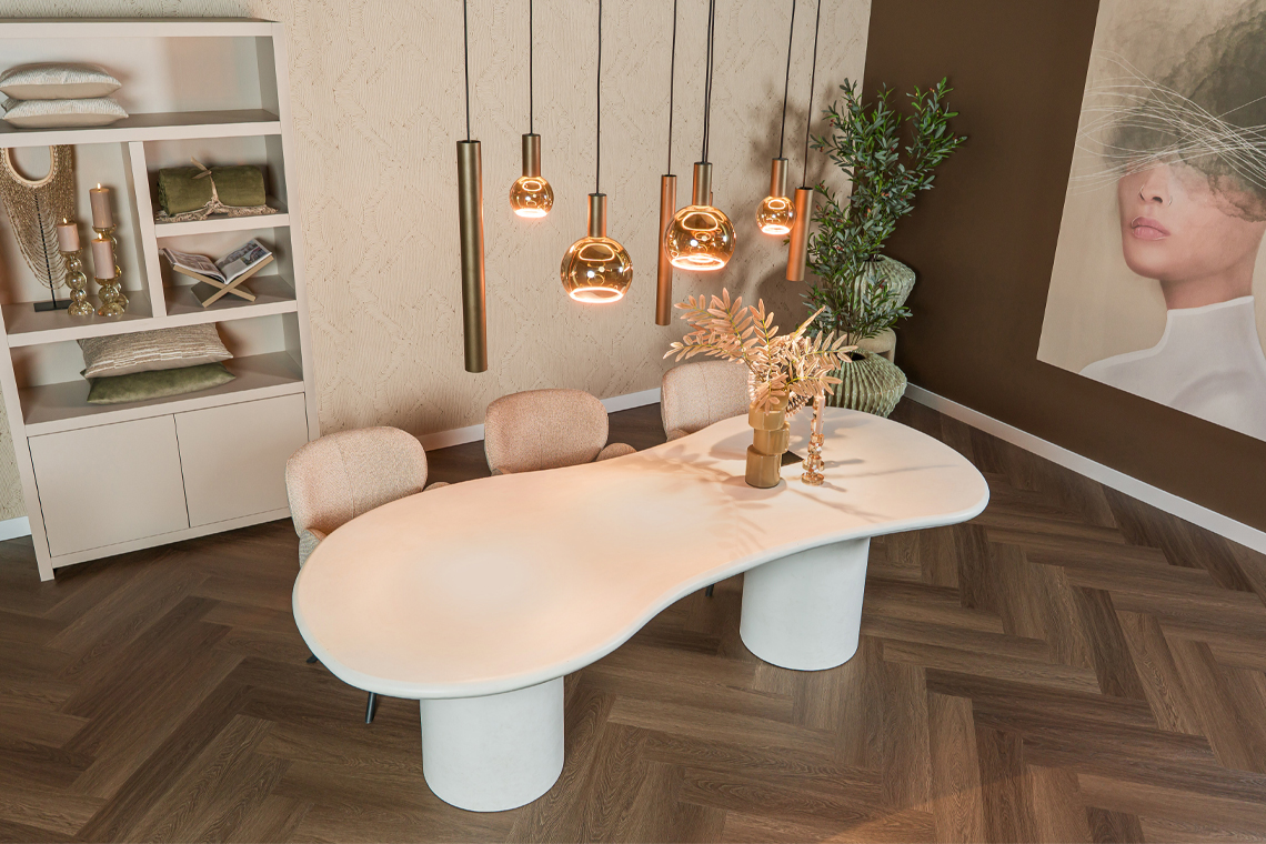 Hoewel veel eettafels traditioneel rechthoekig zijn, gaat de Seki juist een stap verder. Integendeel, door de vloeiende vormen creëer je een zachtere uitstraling in de ruimte. Daardoor ontstaat er een harmonieuze sfeer die uitnodigt tot samenzijn. Bovendien maakt de kleurkeuze het eenvoudig om deze tafel te combineren met uiteenlopende stoelen en accessoires.