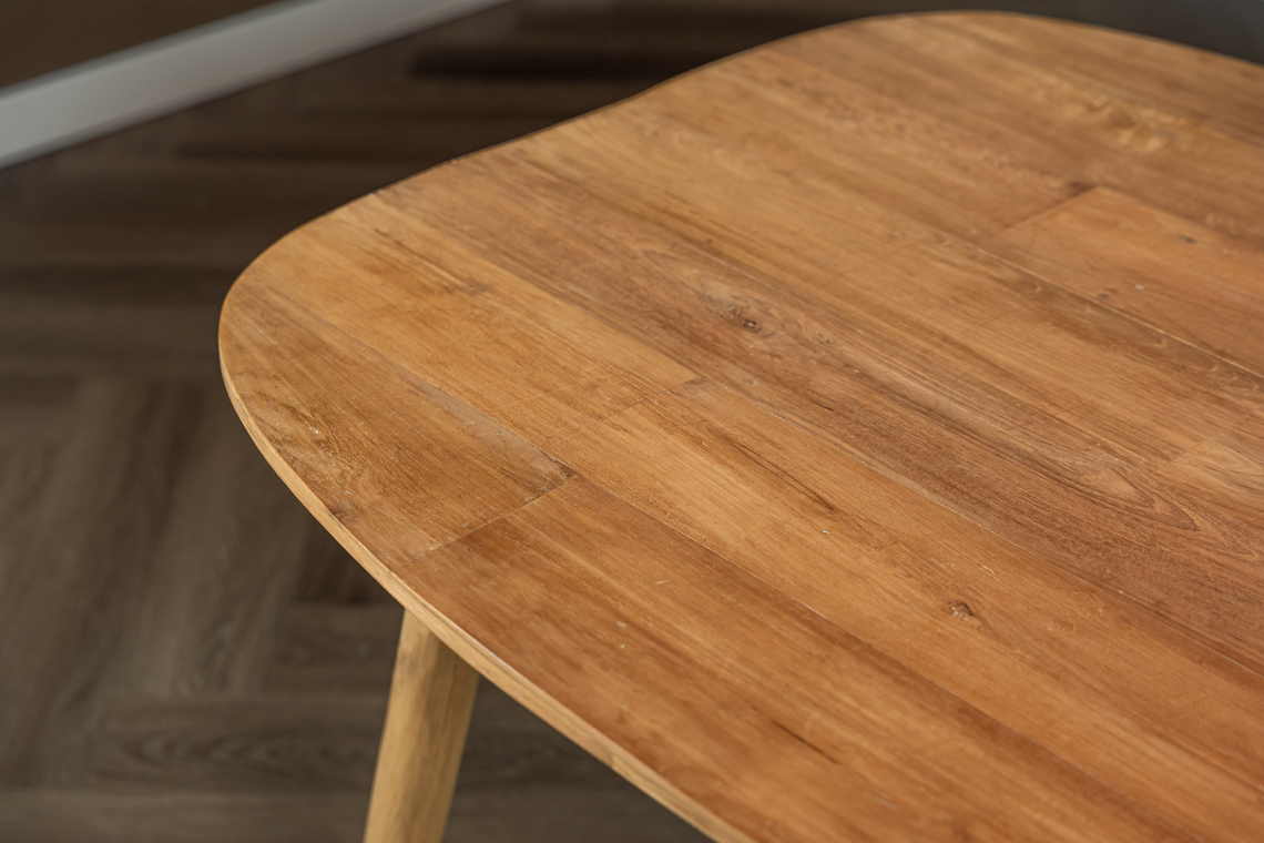 Samenvatting: Eettafel Tabassum is een duurzame en stijlvolle keuze voor jouw interieur. Gemaakt van gerecycled teakhout en met een ovale vorm, past deze tafel perfect in een Scandinavische stijl. Met drie maten om uit te kiezen, vind je altijd de juiste maat voor jouw ruimte!