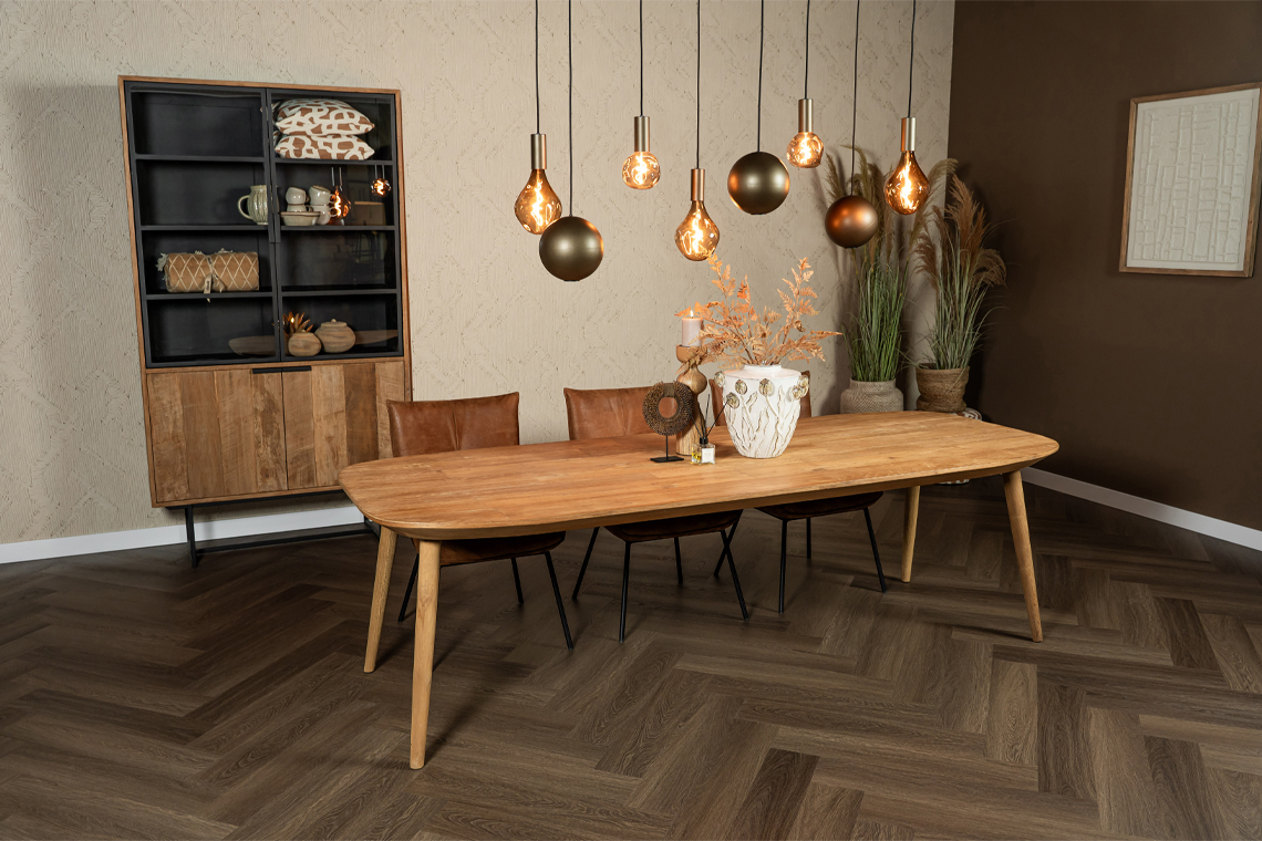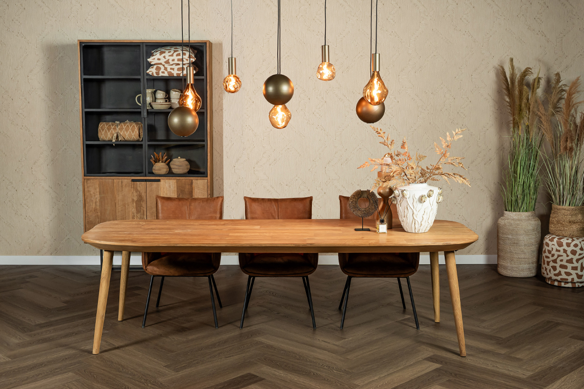 Eettafel Tabassum is een echte eyecatcher in jouw interieur. Deze tafel is niet alleen mooi, maar ook duurzaam. Hij is gemaakt van gerecycled teakhout en heeft een natuurlijke bruine kleur die zorgt voor een warme uitstraling.