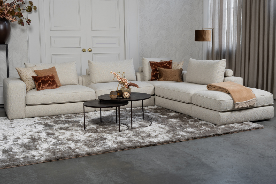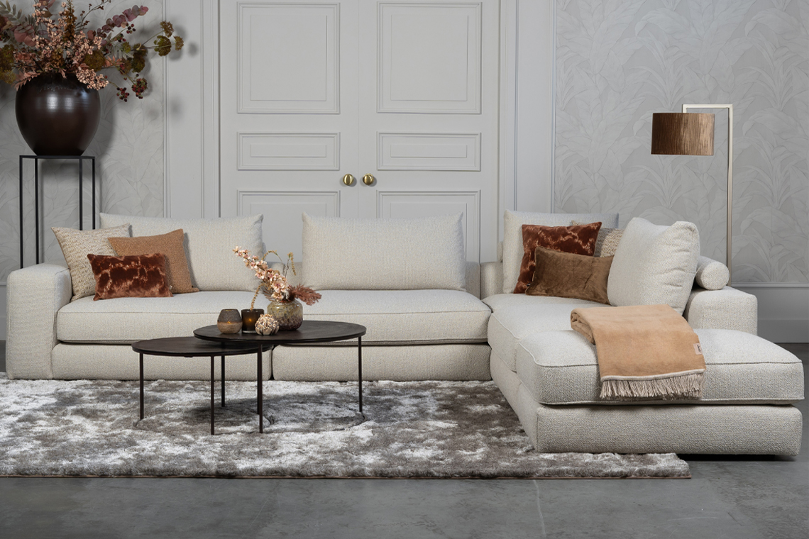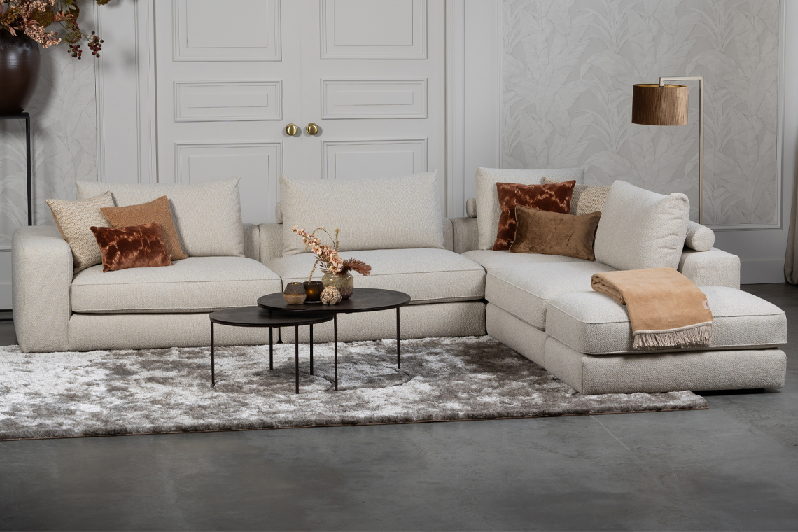 Daarnaast is combineren eenvoudig. In een modern interieur zorgt de Elementenbank Eva voor zachtheid, omdat de ronde vormen de strakke lijnen doorbreken. In een warm of hotel chique interieur versterkt hij juist de luxe sfeer door de royale opstelling. Ten eerste creëer je meer balans in de ruimte, ten tweede oogt de woonkamer groter en rustiger door de lichte kleur en open vorm.