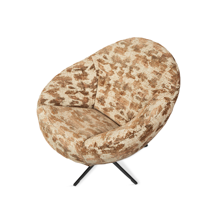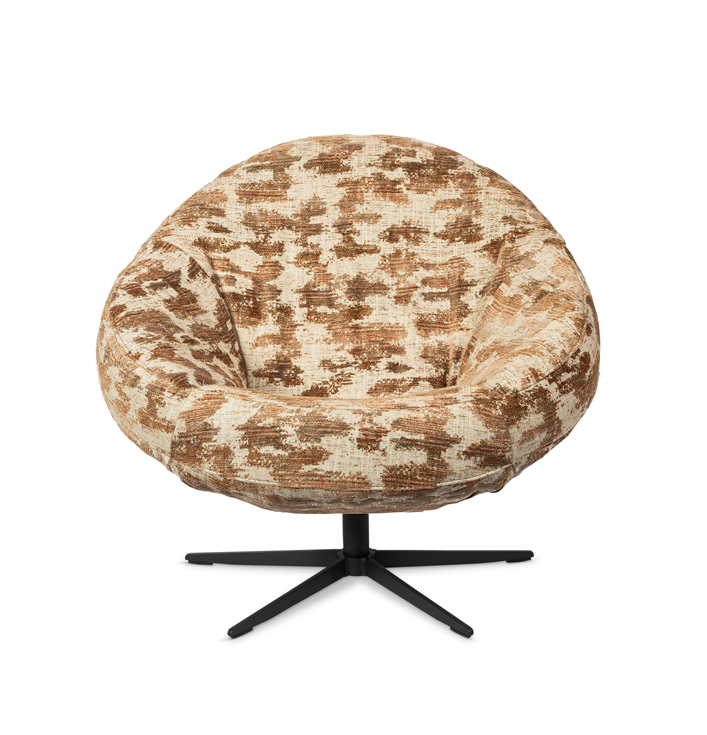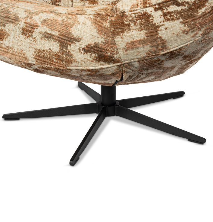 Stoffen fauteuil patroon bruin met metalen stervoet zwart