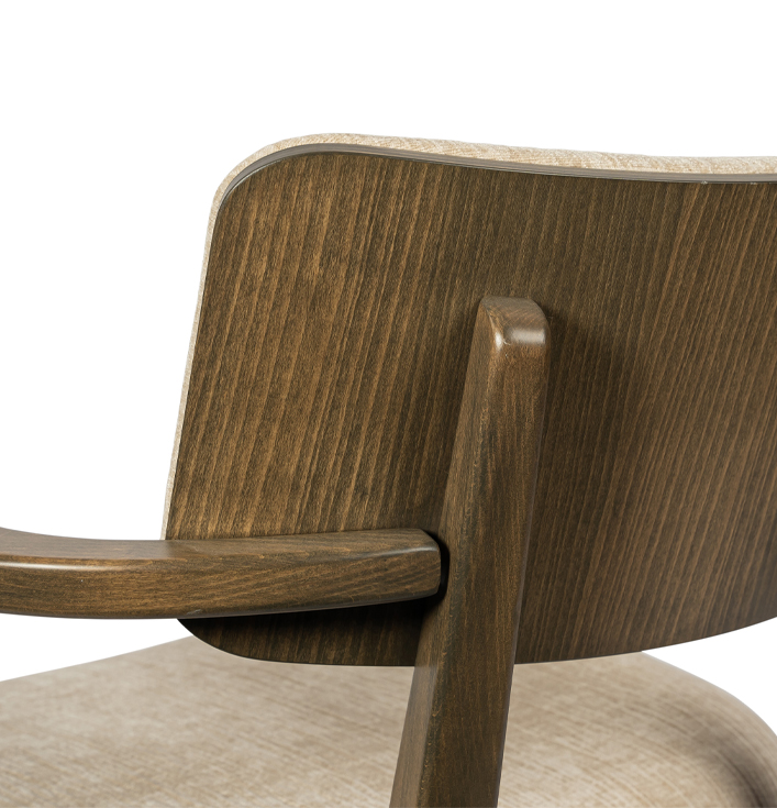 Je kunt kiezen tussen een beuken zwart of beuken smokey grey frame onder de fauteuil. Beide framekleuren passen perfect bij het moderne ontwerp. Ze bieden een solide basis voor de stoel.