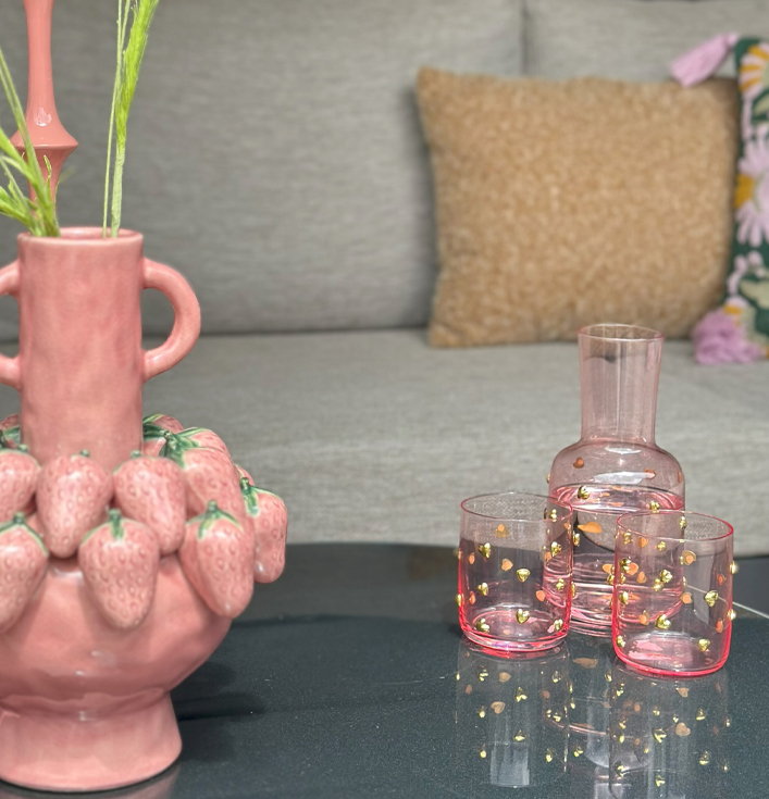 Net zoals luxe champagneglazen brengt dit glas een gevoel van feest en liefde. Bovendien is het goed te combineren met andere roze of gouden accessoires, zoals kaarsen, servetten of tafellopers. Denk bijvoorbeeld aan een zomerse brunch of een Valentijnsdiner – dit glas maakt het af.