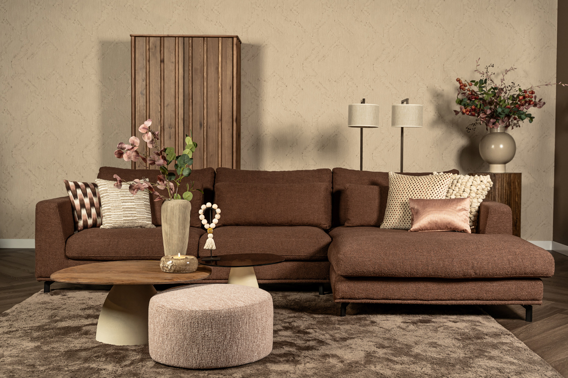 De Hoekbank Carmen is de perfecte keuze voor wie comfort en stijl wil combineren in de woonkamer. Tijdens een filmavond of terwijl je gezellig met vrienden of familie samenkomt, ervaar je direct het royale zitcomfort van deze moderne hoekbank. Bovendien zorgt de warme bruine kleur voor een knusse en stijlvolle uitstraling die ieder interieur verrijkt.