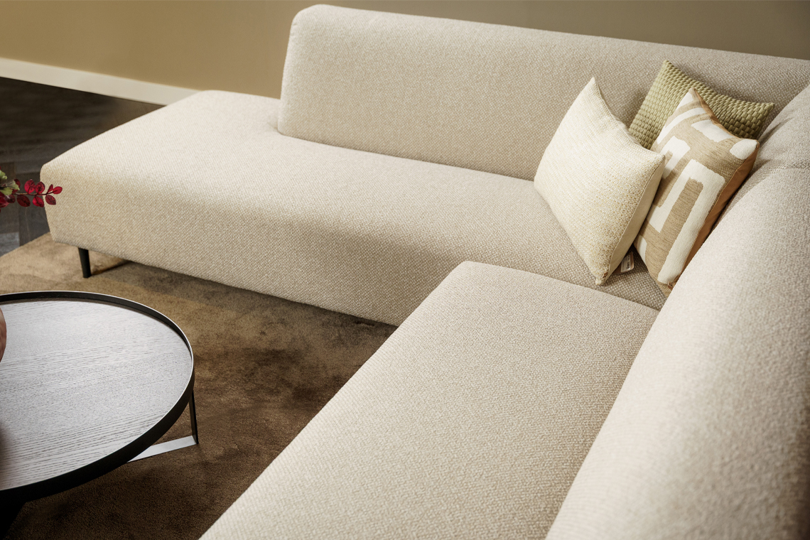 Verder: veelzijdige bank die je in verschillende hoeken van de kamer kunt plaatsen.