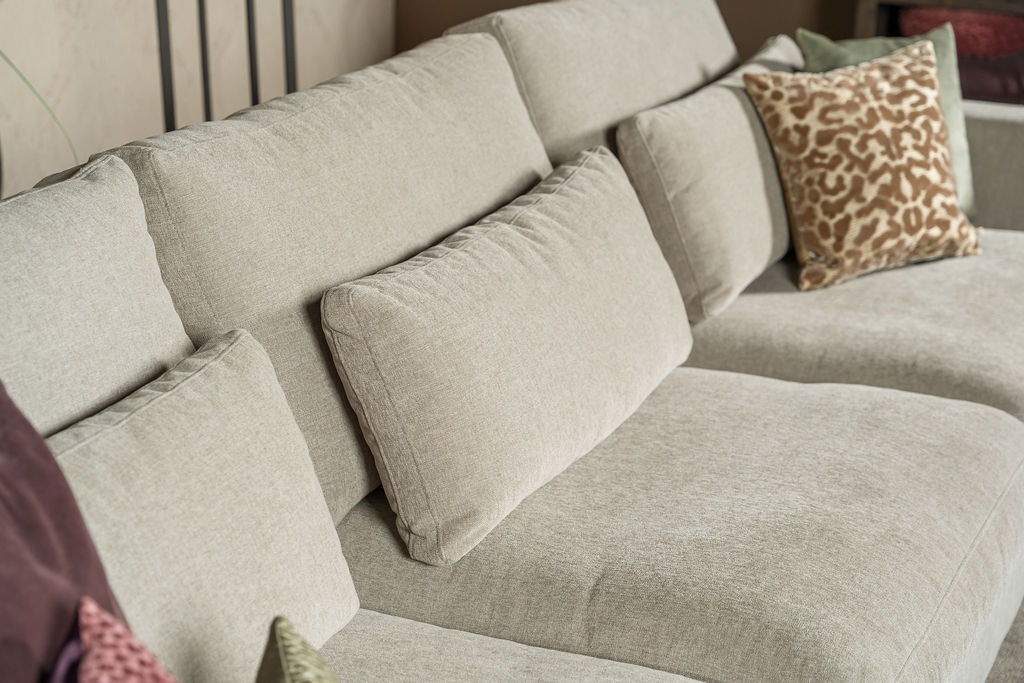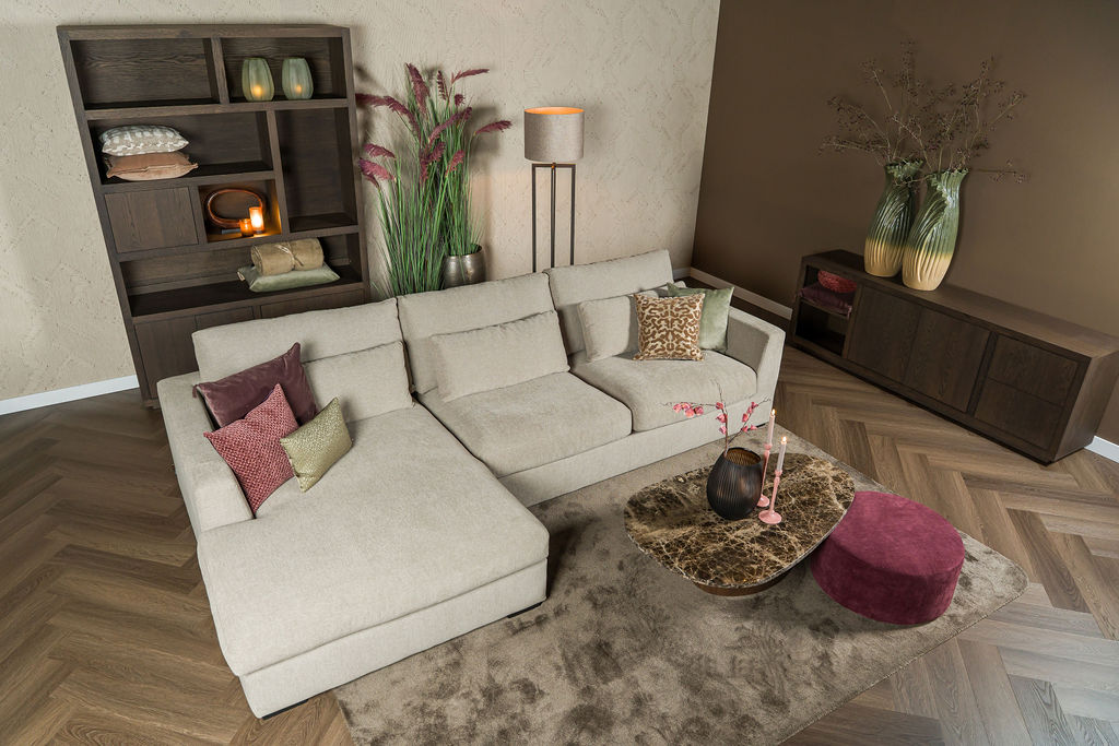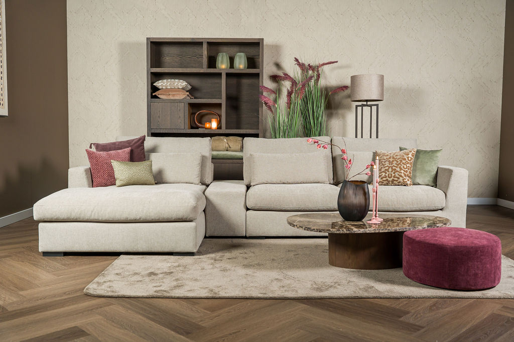 Tijdens een ontspannen avond met familie of vrienden biedt deze hoekbank voldoende ruimte voor iedereen. Doordat de modulaire opzet flexibel aanpasbaar is, kun je eenvoudig kiezen tussen een linker- of rechterhoek, of zelfs een ruime U-opstelling. Daarom past de Elena perfect in zowel compacte woonkamers als grote leefruimtes.