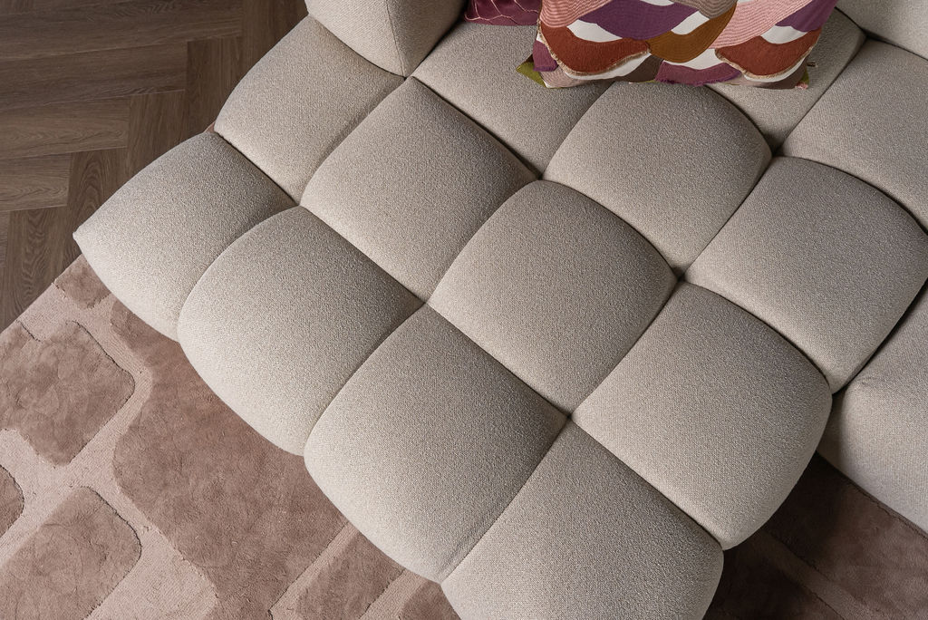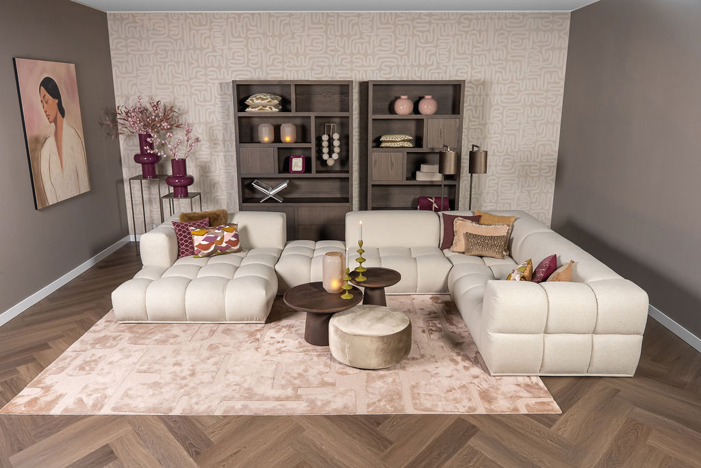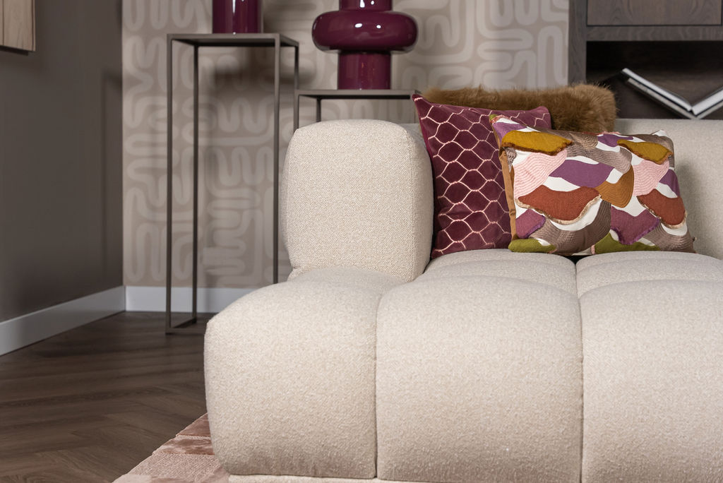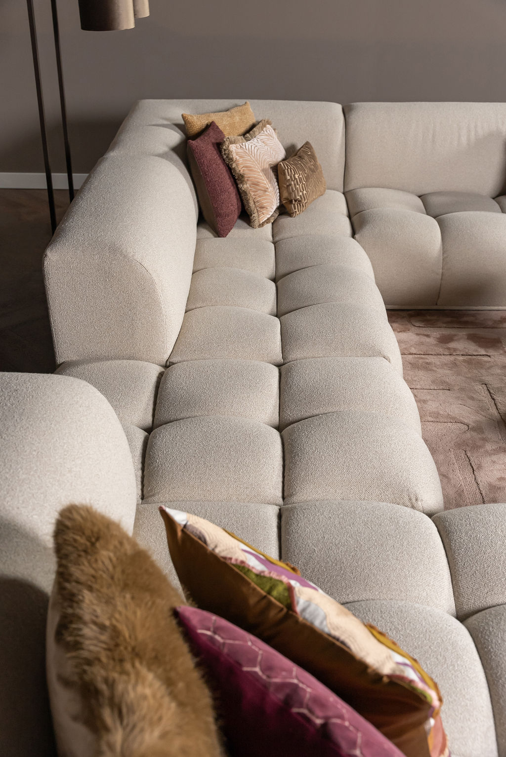 De trendy Hoekbank Oriane met opvallend blokpatroon is een eyecatcher in elke ruimte. Het moderne ontwerp en strakke lijnen geven je interieur een stijlvolle upgrade. Deze bank combineert esthetiek met ultiem zitcomfort, waardoor hij perfect is om te ontspannen na een lange dag. Of je nu alleen ontspant of samen met vrienden van een filmavond geniet, de Oriane is de ideale plek om tot rust te komen.
