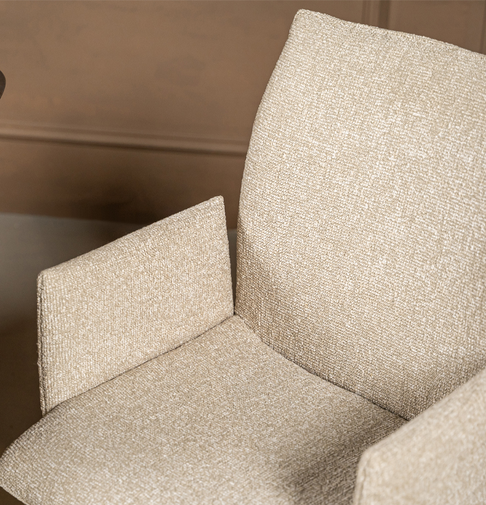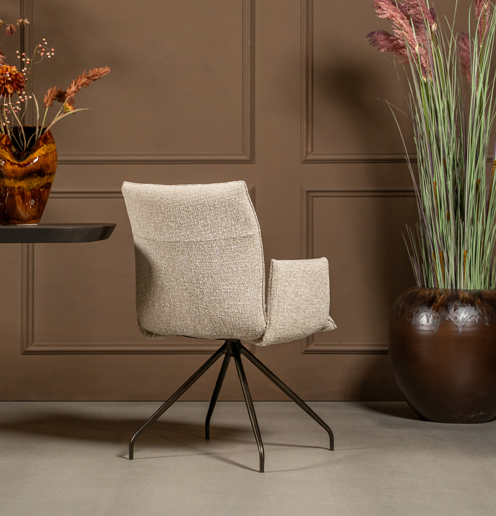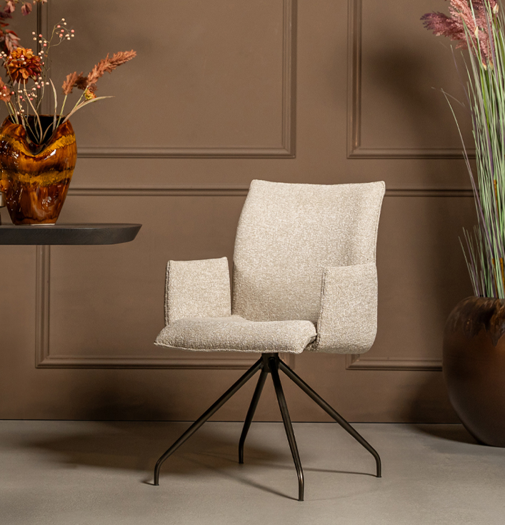 Eetkamerstoel Holly met arm is de perfecte keuze voor iedereen die comfort en stijl wil combineren. De stoel heeft een comfortabele zitting en armleuningen, waardoor je optimaal kunt genieten van je maaltijd of gesprekken aan de eettafel. Je kunt de stoel ook zonder armleuning verkrijgen, zodat je kunt kiezen wat het beste bij je interieur past.