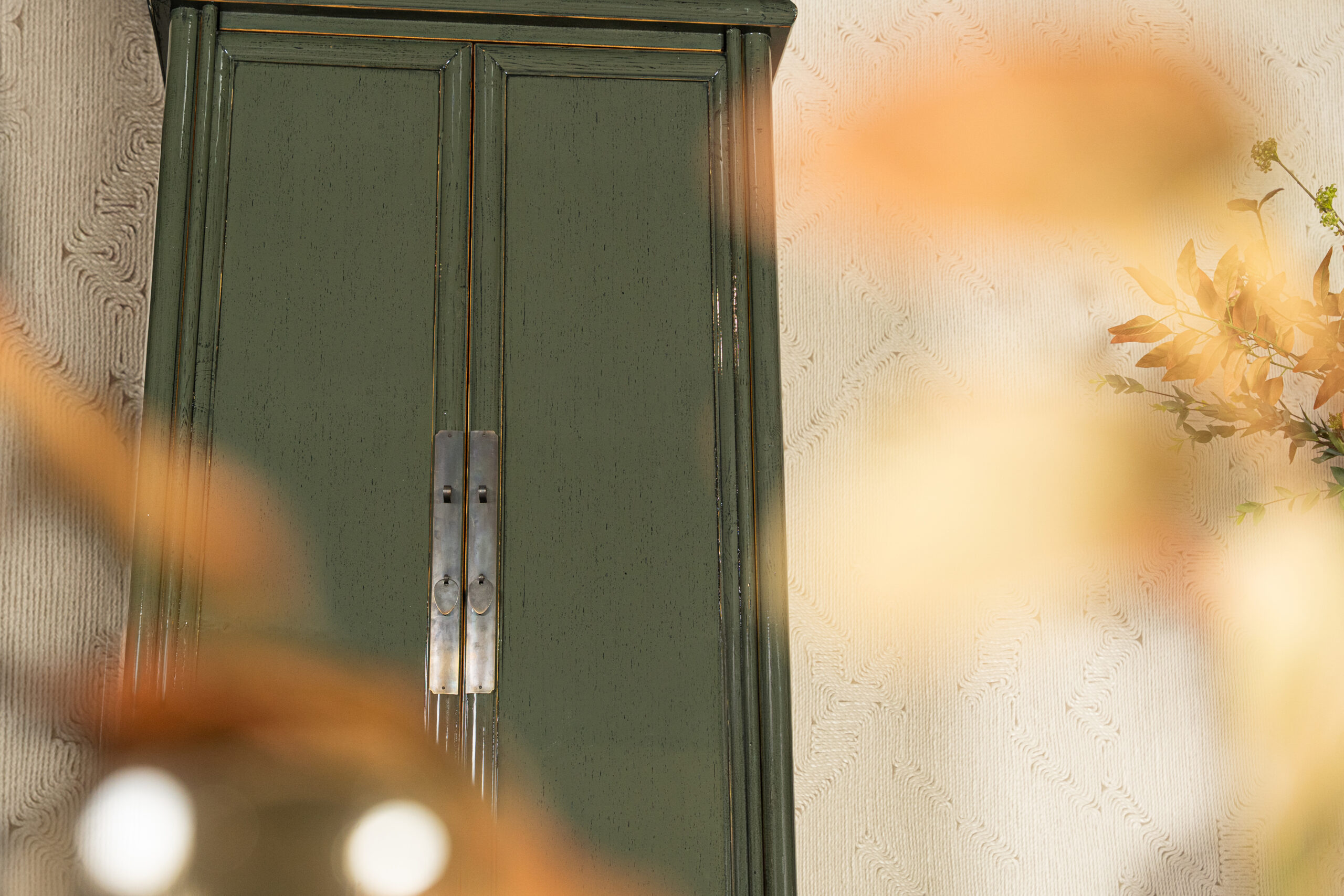 De diepe jadegroene kleur van deze kast zorgt voor een rustgevende sfeer in huis. Net zoals planten en zachte verlichting, draagt deze tint bij aan een gevoel van balans en verfijning. Bovendien past deze kleur uitstekend bij zowel moderne als klassieke interieurs.