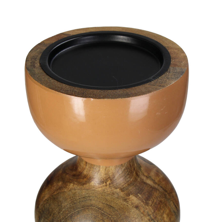 Wat de Ochre bijzonder maakt, is de unieke vormgeving met zachte rondingen. Het houten ontwerp straalt ambachtelijkheid en warmte uit, terwijl de bovenkant ruimte biedt voor een stompkaars of een decoratieve kaars. Net zoals bij andere natuurlijke woonaccessoires vormt deze kandelaar een stijlvolle aanvulling op zowel een modern als een klassiek interieur.