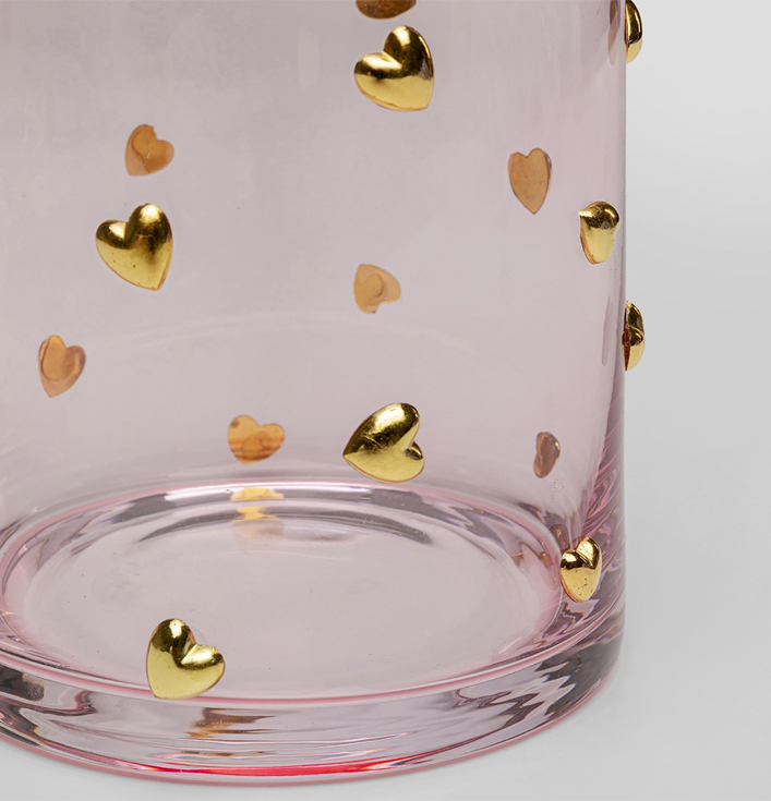 • Uniek design met gouden hartjes op roze glas