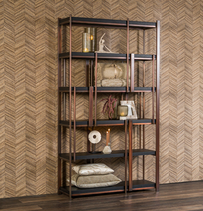 Hoewel Kast Bizen een robuuste uitstraling heeft, blijft het geheel licht dankzij het open ontwerp. Daarentegen biedt het metalen frame maximale stevigheid en duurzaamheid. Zodoende geniet je jarenlang van een meubel dat niet alleen praktisch, maar ook persoonlijk is.