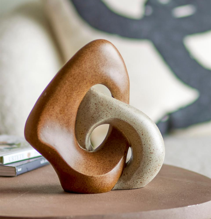 Ornament Esad bruin – kunstzinnig design en warme uitstraling Het Ornament Esad bruin is een opvallend en stijlvol woonaccessoire dat direct de aandacht trekt. Terwijl de bijzondere organische vorm zorgt voor een kunstzinnige uitstraling, brengt de warme bruine kleur rust en elegantie. Daardoor is dit ornament niet alleen een decoratief object, maar ook een artistieke toevoeging die je interieur meer karakter geeft. Tijdens het stylen van je woonkamer, kantoor of hal komt het Ornament Esad prachtig tot zijn recht. Tegelijkertijd is het ook ideaal als losstaand object dat fungeert als echte eyecatcher. Bovendien combineert de neutrale en natuurlijke kleurtint moeiteloos met andere woonaccessoires, zoals kandelaars, vazen en schalen. Ten eerste straalt het ornament luxe en verfijning uit. Daarnaast is het gemaakt van stevig en duurzaam materiaal, zodat je er jarenlang plezier van hebt. Verder past het uitstekend in uiteenlopende woonstijlen, van modern en minimalistisch tot bohemian en klassiek. Ten slotte is het Ornament Esad bruin een origineel cadeau voor liefhebbers van kunstzinnige en unieke interieurstukken. Het Ornament Esad bruin is vergelijkbaar met sculpturen die je terugvindt in exclusieve galeries. Net zoals een kunstwerk sfeer en persoonlijkheid toevoegt aan een ruimte, doet dit ornament dat ook. Denk daarbij aan een minimalistische woonkamer die behoefte heeft aan een opvallend detail, of een luxe ingerichte ruimte waar dit kunstobject de finishing touch vormt. Concluderend: het Ornament Esad bruin is een bijzonder en stijlvol decoratieobject dat kunst, warmte en design combineert. Kortom, een must-have voor iedereen die zijn interieur wil verrijken met een uniek woonitem.