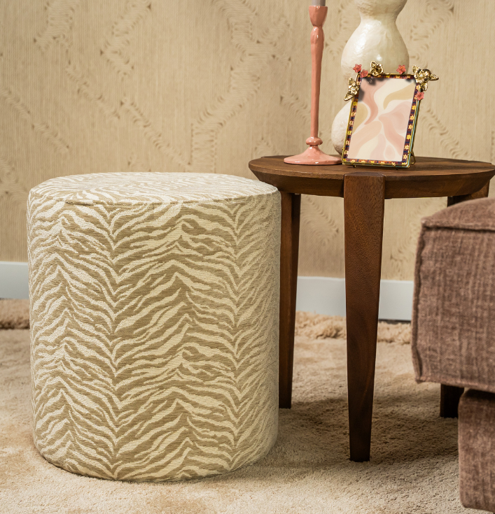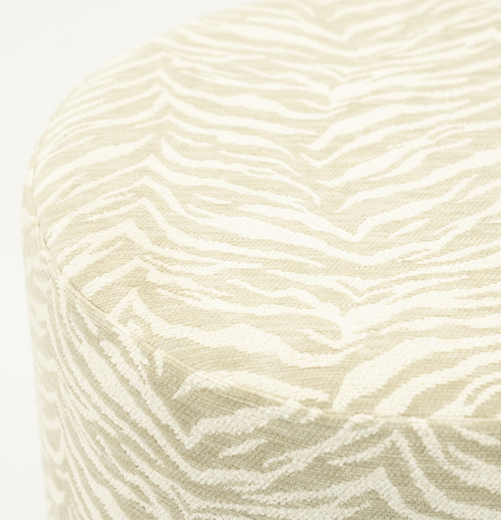 De Poef Tigra beige valt in de eerste plaats op door zijn zachte uitstraling en subtiele zebraprint. Het dessin is ton-sur-ton uitgevoerd, waardoor het speels oogt maar toch rustig blijft. Daardoor past deze poef perfect in een interieur waar sfeer en comfort samenkomen. De beige kleur zorgt voor warmte en laat zich makkelijk combineren.