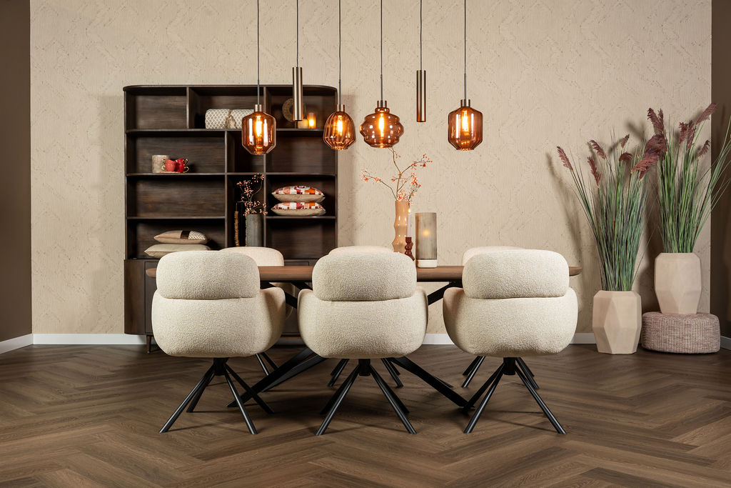Toe aan een nieuwe sfeer aan tafel? Eetkamerstoel Layla geeft je eethoek direct een warme, luxe uitstraling én ongekend zitcomfort. De zachte bouclé, ronde vormen en comfortabele draaifunctie maken haar niet alleen mooi om te zien, maar heerlijk om in te zitten. En het beste? Layla is direct uit voorraad leverbaar. Geen lange levertijden, alleen maar snel genieten van jouw nieuwe favoriete stoel.