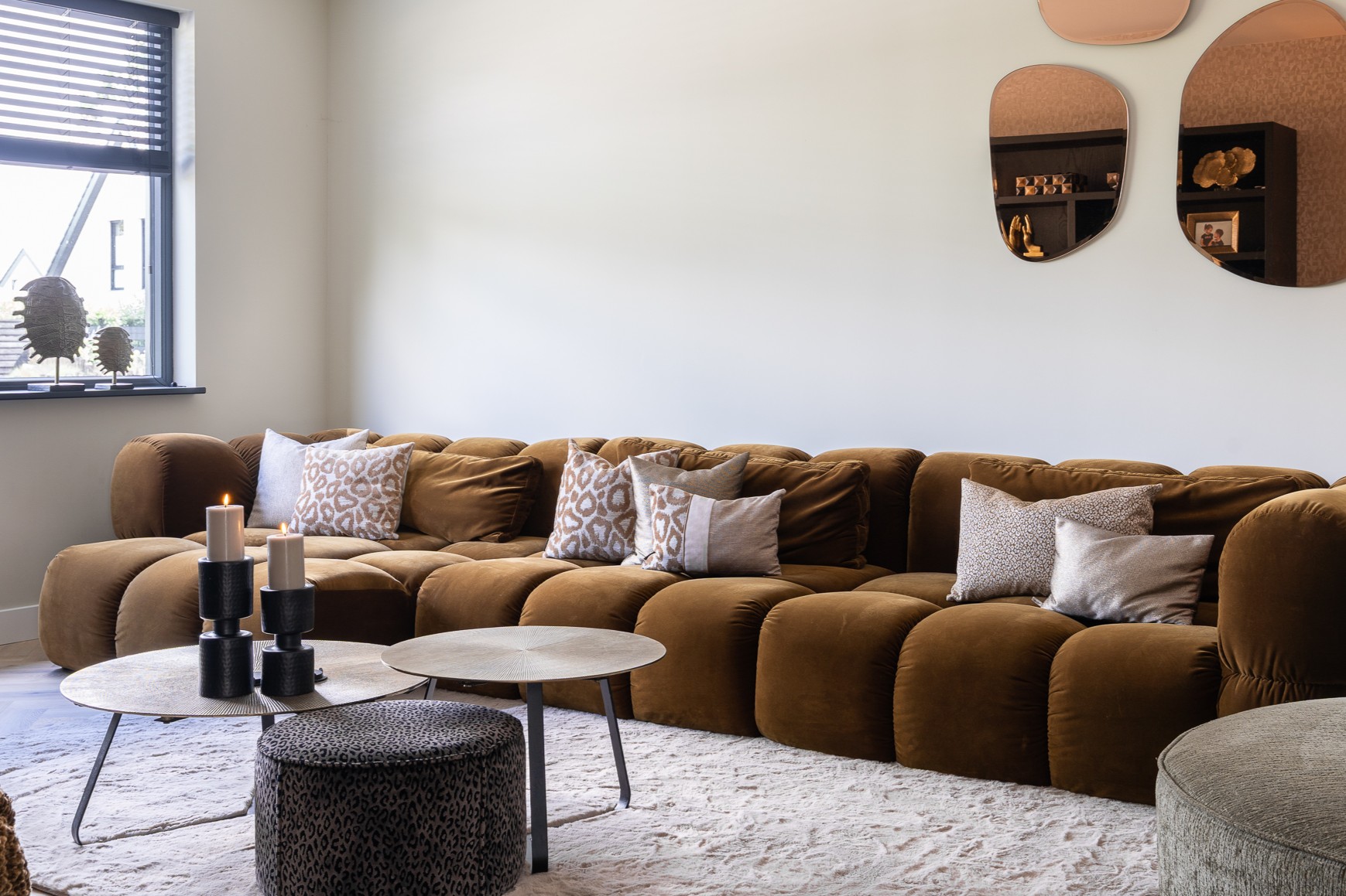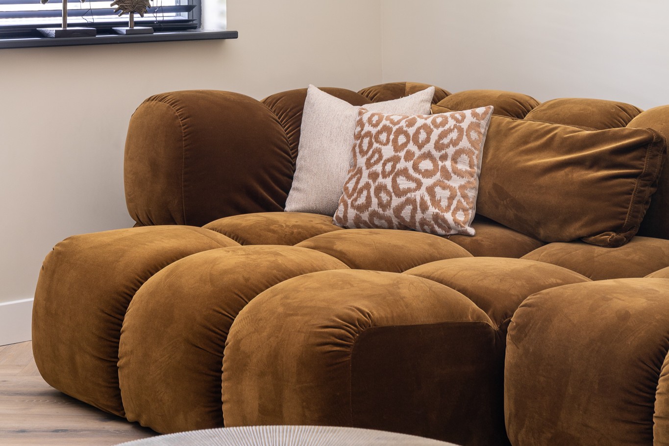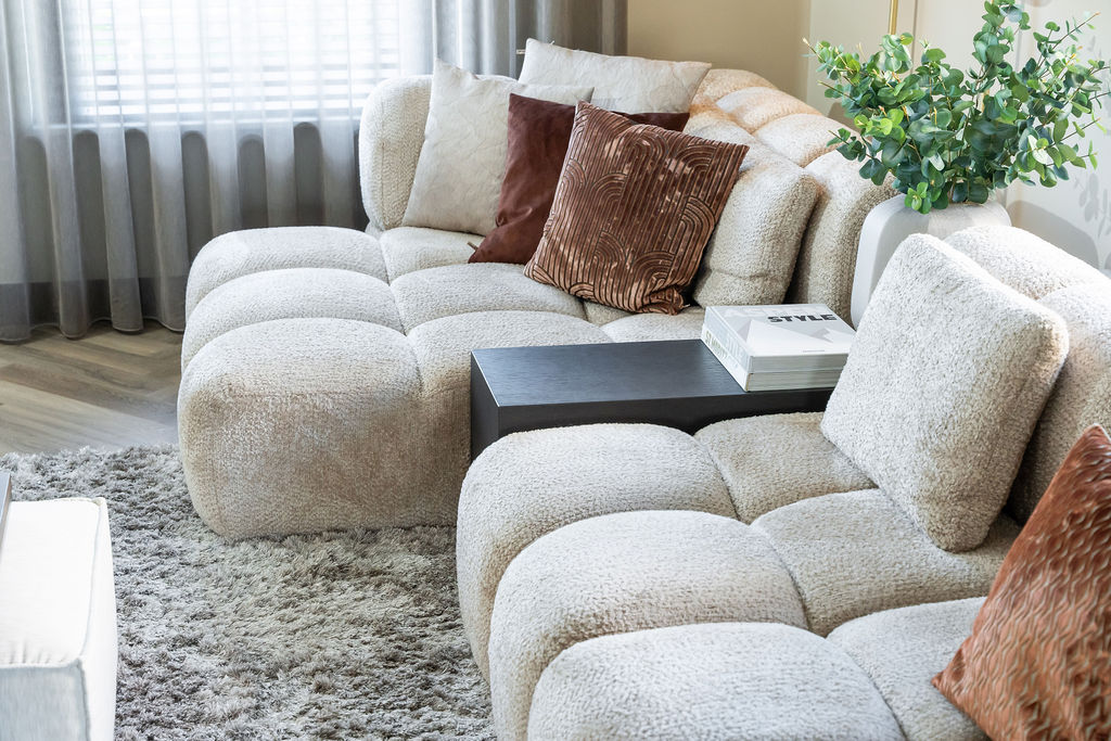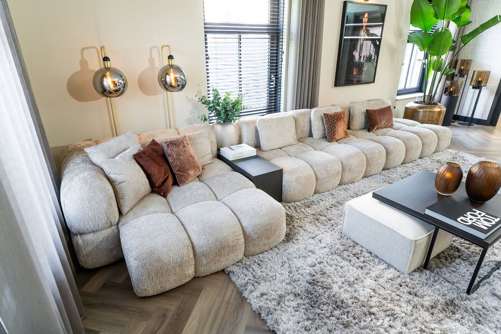 Verschillende binnenkijkers zijn al verrijkt met een prachtige Phoebe (hoek)bank. Maar met behulp van onze interieuradviseurs of Studio Whoon is deze trendbank aangeraden en samengesteld. Denk aan deze zijdezachte stof in een rijke stof. Net als andere banken zien we dit exemplaar regelmatig terugkomen in een mooi beige interieur waarin hij het middelpunt van de woonkamer mag zijn. Ter conclusie: kom langs en stel hem samen!