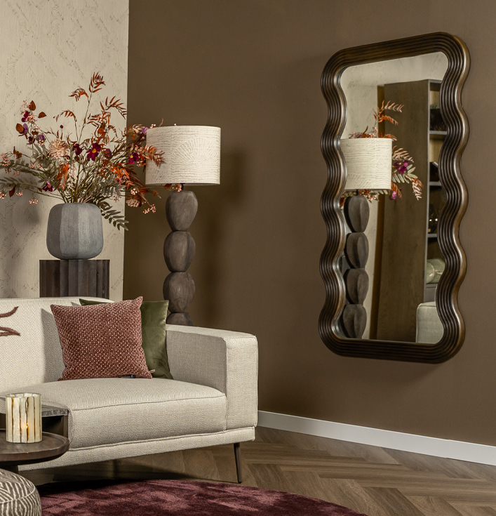Tijdens het gebruik ervaar je hoe de Spiegel Mayfield Bruin het licht prachtig reflecteert, waardoor een kamer optisch groter en lichter lijkt. Daarnaast past het ontwerp moeiteloos in verschillende interieurs—van modern tot retro en van hotel chique tot warm Scandinavisch. Hoewel het ontwerp speels en golvend is, straalt het geheel toch rust en elegantie uit. Daarentegen kunnen veel strakke spiegels kil en minder uitnodigend ogen.