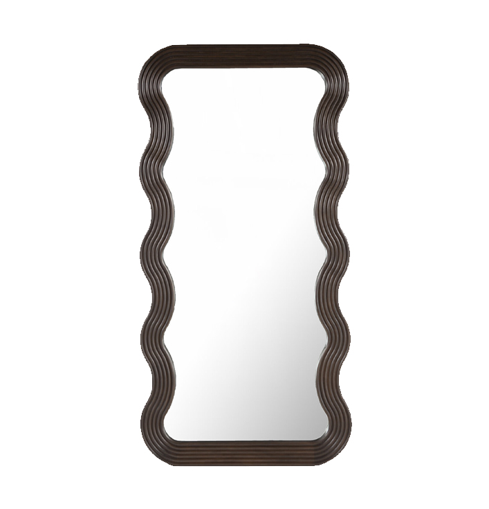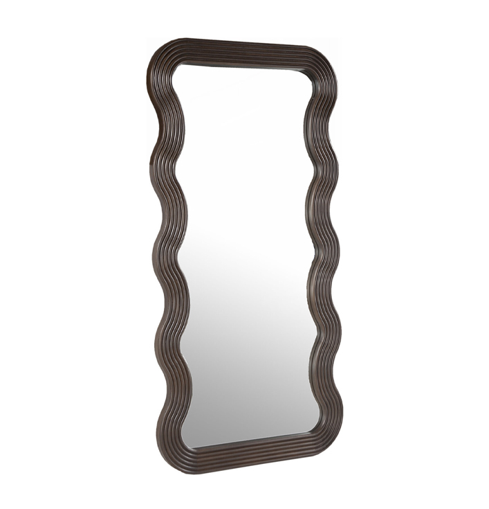 Ten eerste biedt de spiegel een perfecte balans tussen functionaliteit en decoratieve waarde. In de eerste plaats komt dit door het golvende houten frame dat meteen de aandacht trekt. Verder zorgt de royale afmeting ervoor dat hij ideaal is voor in de hal, slaapkamer of woonkamer. Ten slotte past de bruine tint prachtig bij zowel lichte als donkere kleurpaletten.