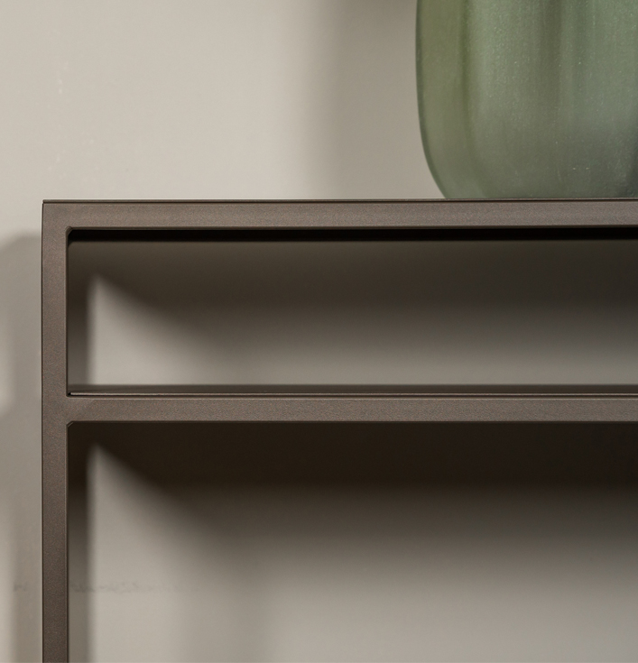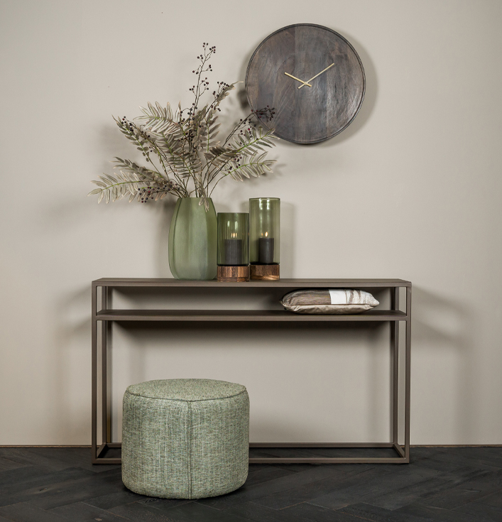 Wat dit exemplaar extra bijzonder maakt, is de ruime opbergmogelijkheid. De twee planken bieden niet alleen een plek voor decoratie, maar ook voor praktische spullen. Berg je sleutels, boeken of andere accessoires eenvoudig op en houd je ruimte netjes en georganiseerd. Zo combineert deze tafel moeiteloos stijl met gebruiksgemak.