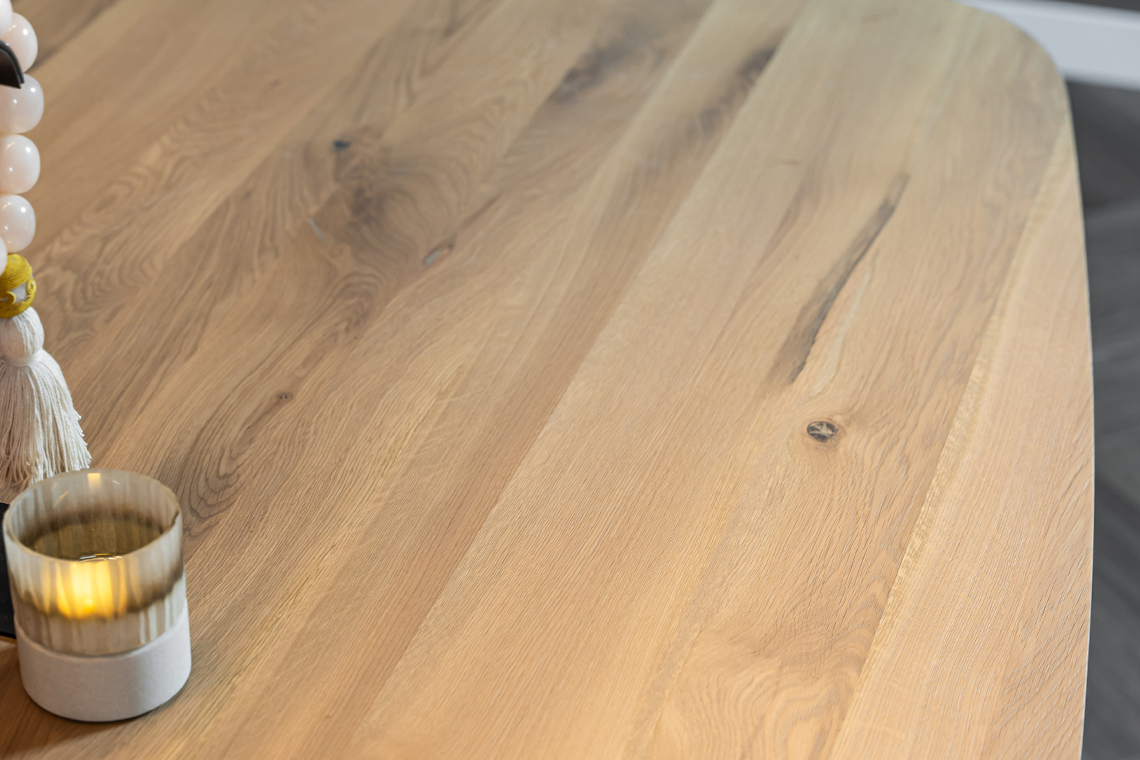 Ten eerste: een stijlvol houten blad dat warmte en karakter toevoegt.
