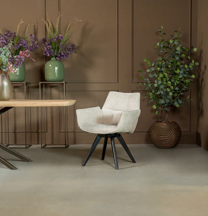 De eetkamerstoel Marseille biedt zowel comfort als flexibiliteit. Je kunt kiezen voor een vaste poot of een draaibare variant. De draaibare versie maakt het eenvoudig om te bewegen zonder de stoel te verschuiven. Dit zorgt voor extra gemak en een moderne uitstraling. De vaste variant biedt juist een stabiele en strakke basis. Welke optie je ook kiest, beide uitvoeringen zijn stijlvol en praktisch.