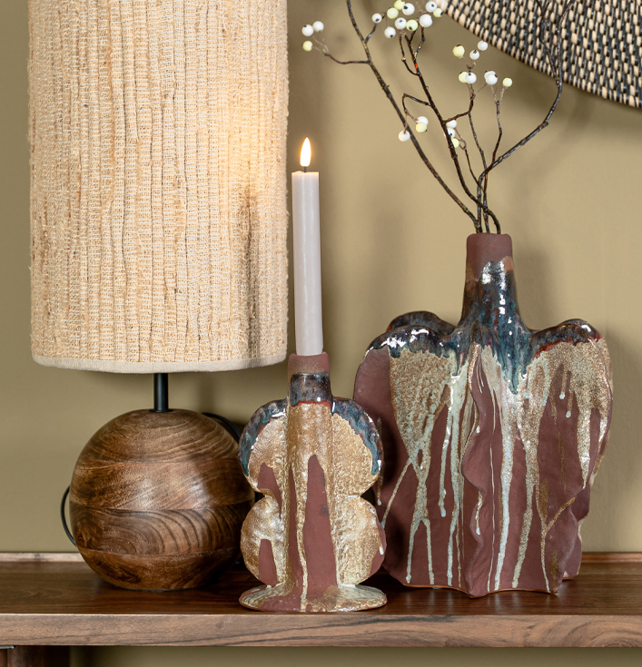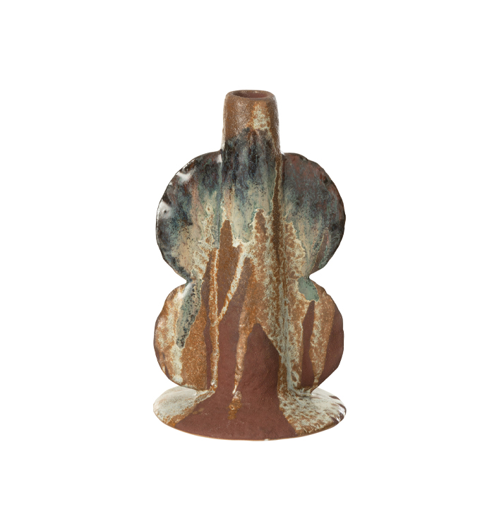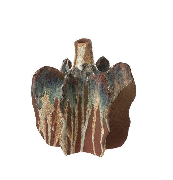 Vaas Naga roestbruin – expressieve vorm met aardse uitstraling De Vaas Naga roestbruin is een waar kunstobject dat direct de aandacht trekt. Door zijn robuuste, organische vorm en diepe roestbruine kleur met glanzende accenten doet deze vaas denken aan een vulkanisch gevormd landschap. Daardoor voegt hij niet alleen sfeer toe, maar ook karakter en een vleugje mystiek aan je interieur. Tijdens het spelen met styling springt deze vaas er moeiteloos uit. Het unieke glazuurpatroon geeft de vaas een dynamische uitstraling, terwijl het silhouet zorgt voor een krachtige aanwezigheid in de ruimte. Tegelijkertijd blijft het kleurenpalet warm en natuurlijk – wat hem geschikt maakt voor diverse woonstijlen, zoals aards modern, bohemian of wabi-sabi. Waarom kiezen voor vaas Naga roestbruin? • Ten eerste: sculpturale vormgeving met een ambachtelijke uitstraling. • Daarnaast: diepe roestbruine kleur met glanzende, organische details. • Bovendien: perfect als los decoratief object of in combinatie met takken. • Tot slot: gemaakt van keramiek met artistieke afwerking. Deze vaas heeft geen bloemen nodig om op te vallen. Denk bijvoorbeeld aan plaatsing op een dressoir, console of open kast – eventueel gecombineerd met andere natuurlijke materialen zoals hout, steen of linnen. Door zijn asymmetrische lijnen en levendige kleurnuances blijft hij boeien, ook bij veranderend lichtinval. Wil je deze bijzondere vaas zelf ervaren? Bezoek onze showroom en ontdek de unieke uitstraling van vaas Naga roestbruin in het echt.