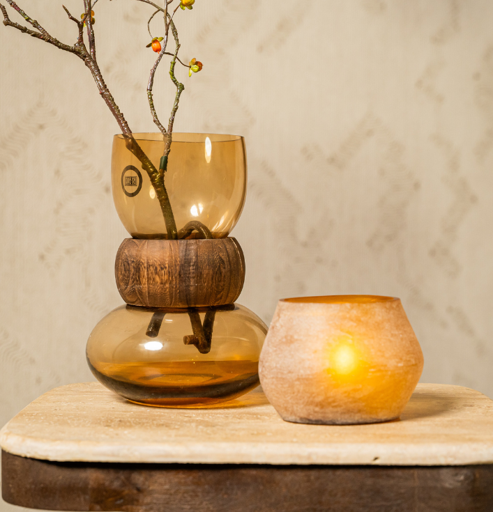 Daarnaast laat hij zich eenvoudig combineren met verschillende woonstijlen. In een modern interieur zorgt hij voor zachtheid, omdat het glas het licht mooi vangt. In een landelijk of bohemian interieur voegt de Vaas Verra bruin extra warmte toe. Ten eerste ontstaat er meer sfeer, ten tweede creëer je een natuurlijk geheel door te werken met aardetinten en ronde vormen.