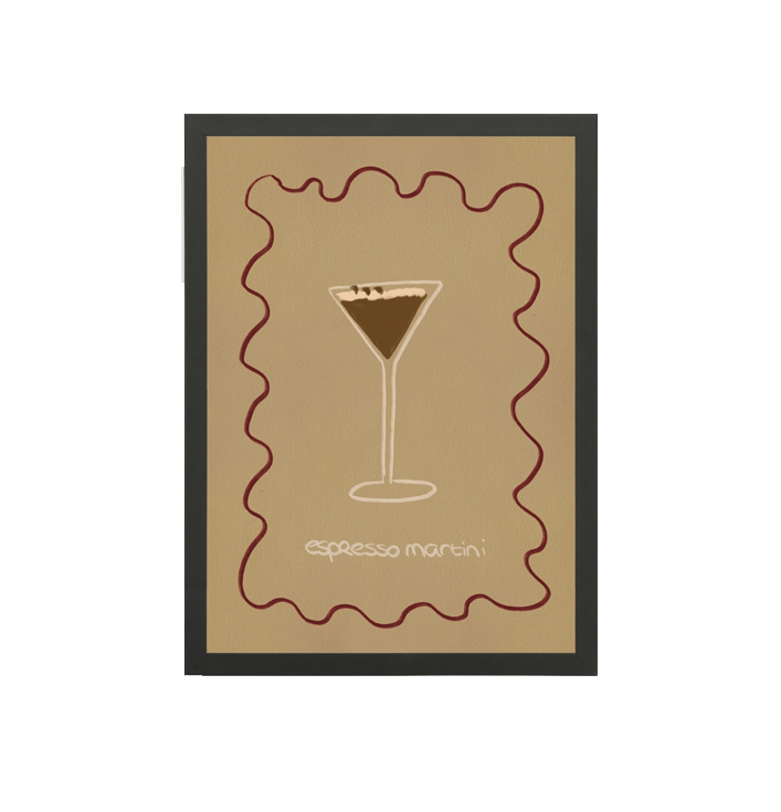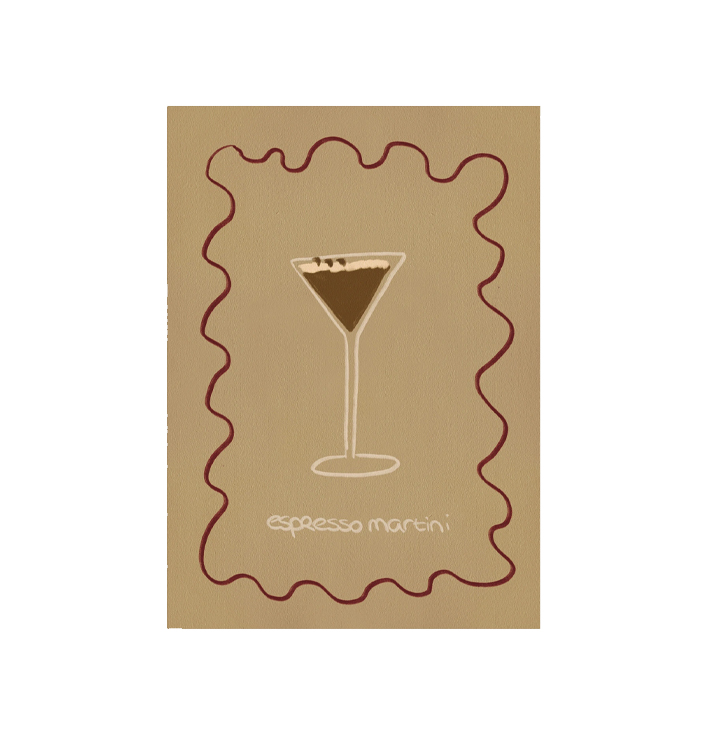 Ten eerste trekt de minimalistische afbeelding van een espresso martini meteen de aandacht. Daarnaast geven de speelse lijnen en warme aardetinten het schilderij een trendy, retrogevoel. Bovendien vormt de donkere lijst een strak contrast, waardoor het kunstwerk zowel in een moderne woonkamer als in een hippe koffiecorner tot zijn recht komt.